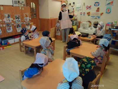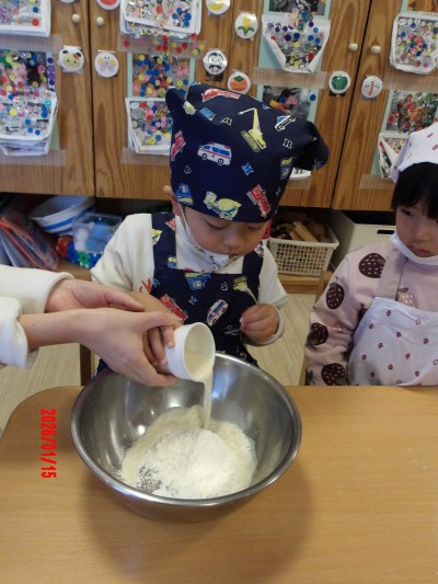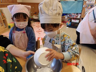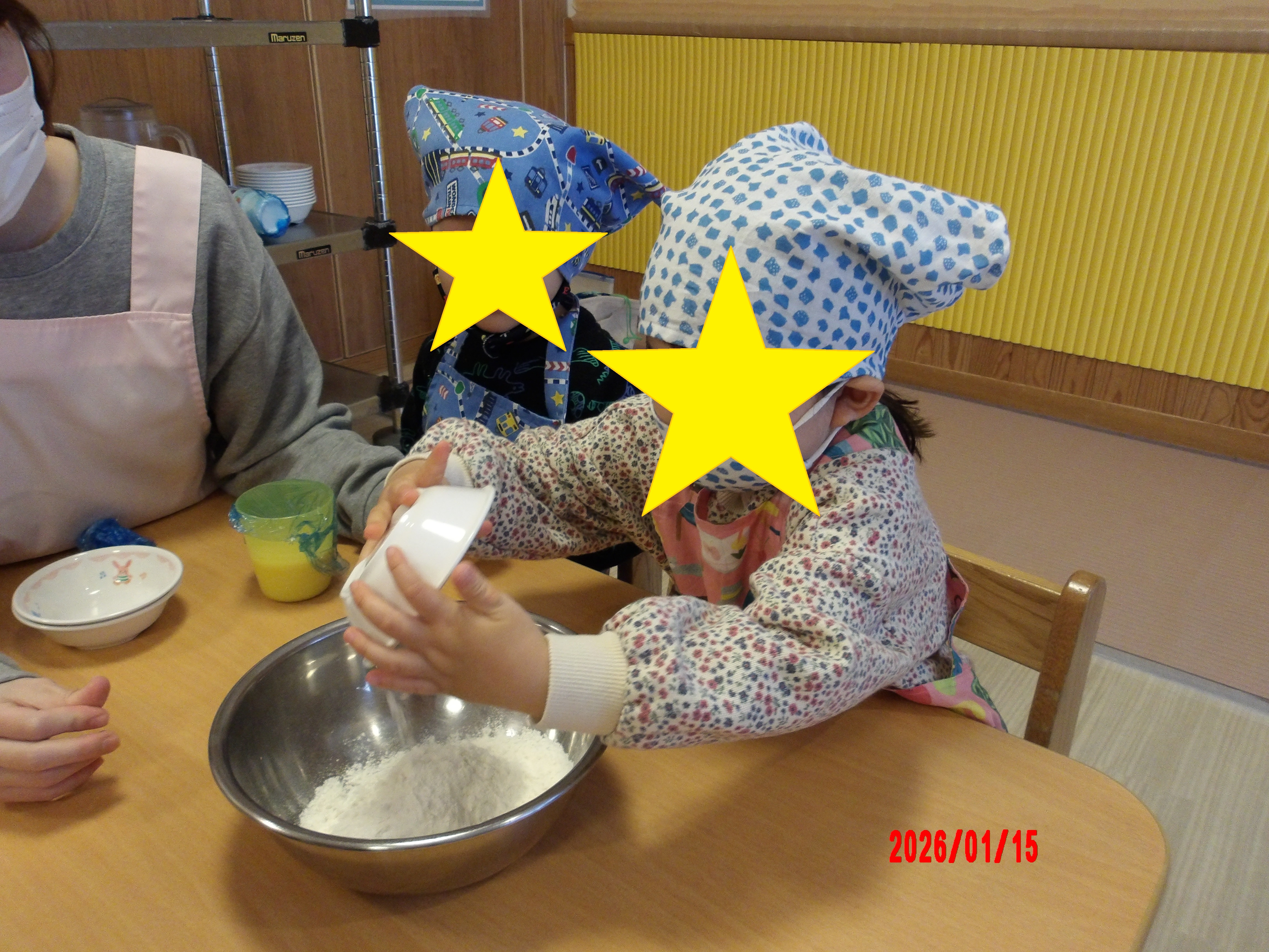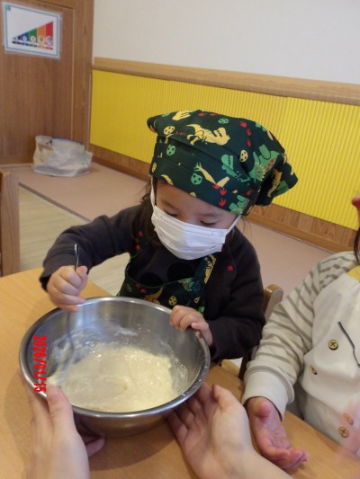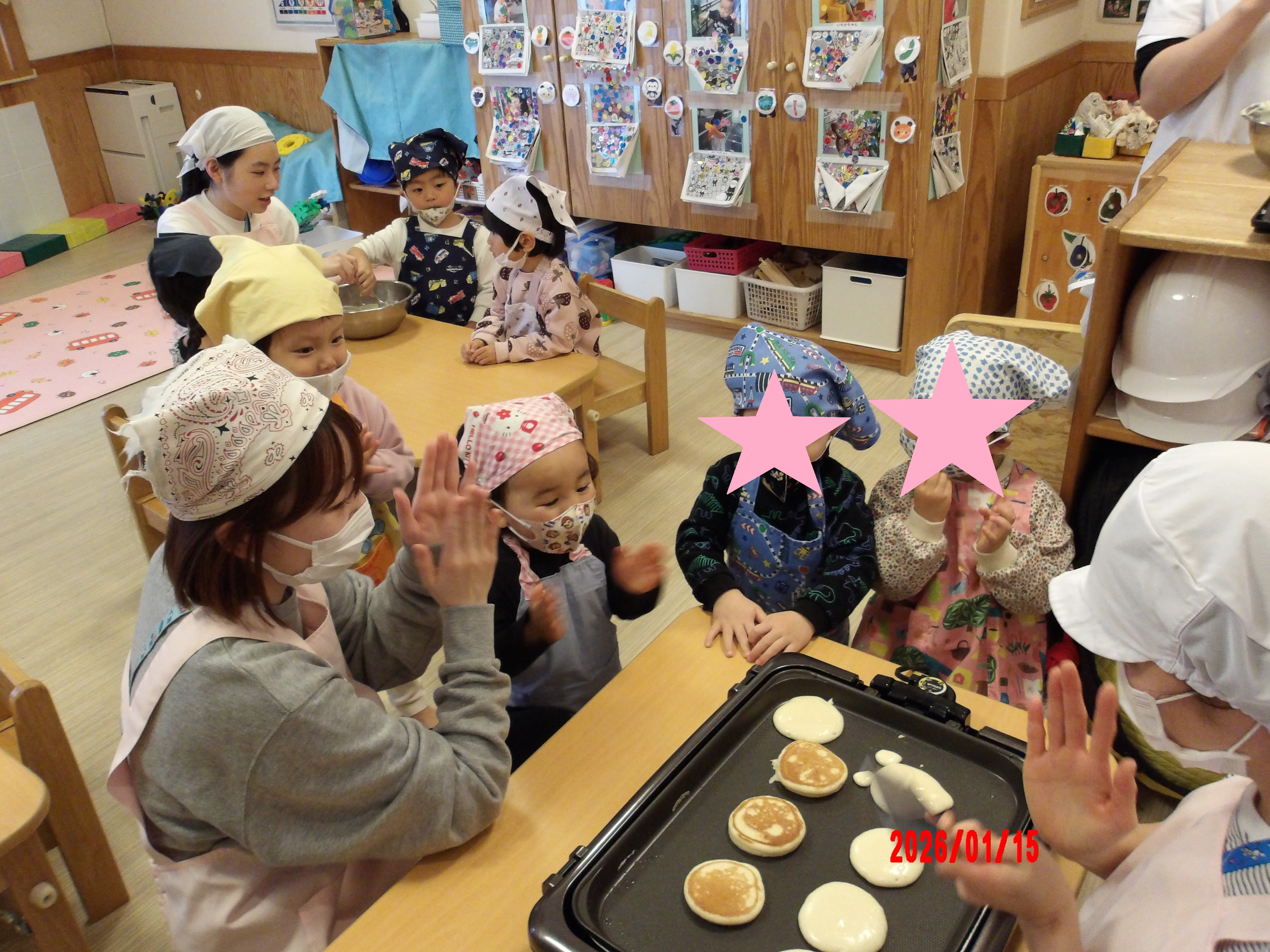 1月の2歳児さんの食育活動は【ホットケーキ作り】でした(^^♪