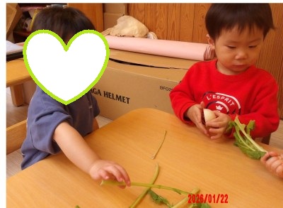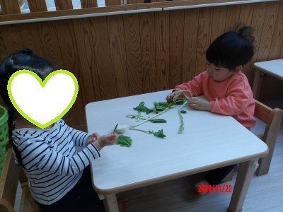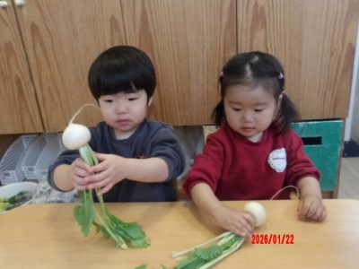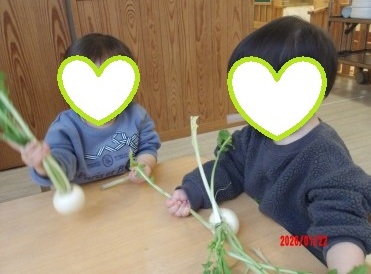 1月の1歳児さんの食育活動は【かぶの観察】でした☆