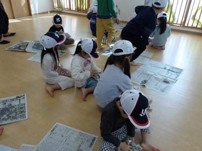 同じようなボールを新聞紙で作ってみることにしました。