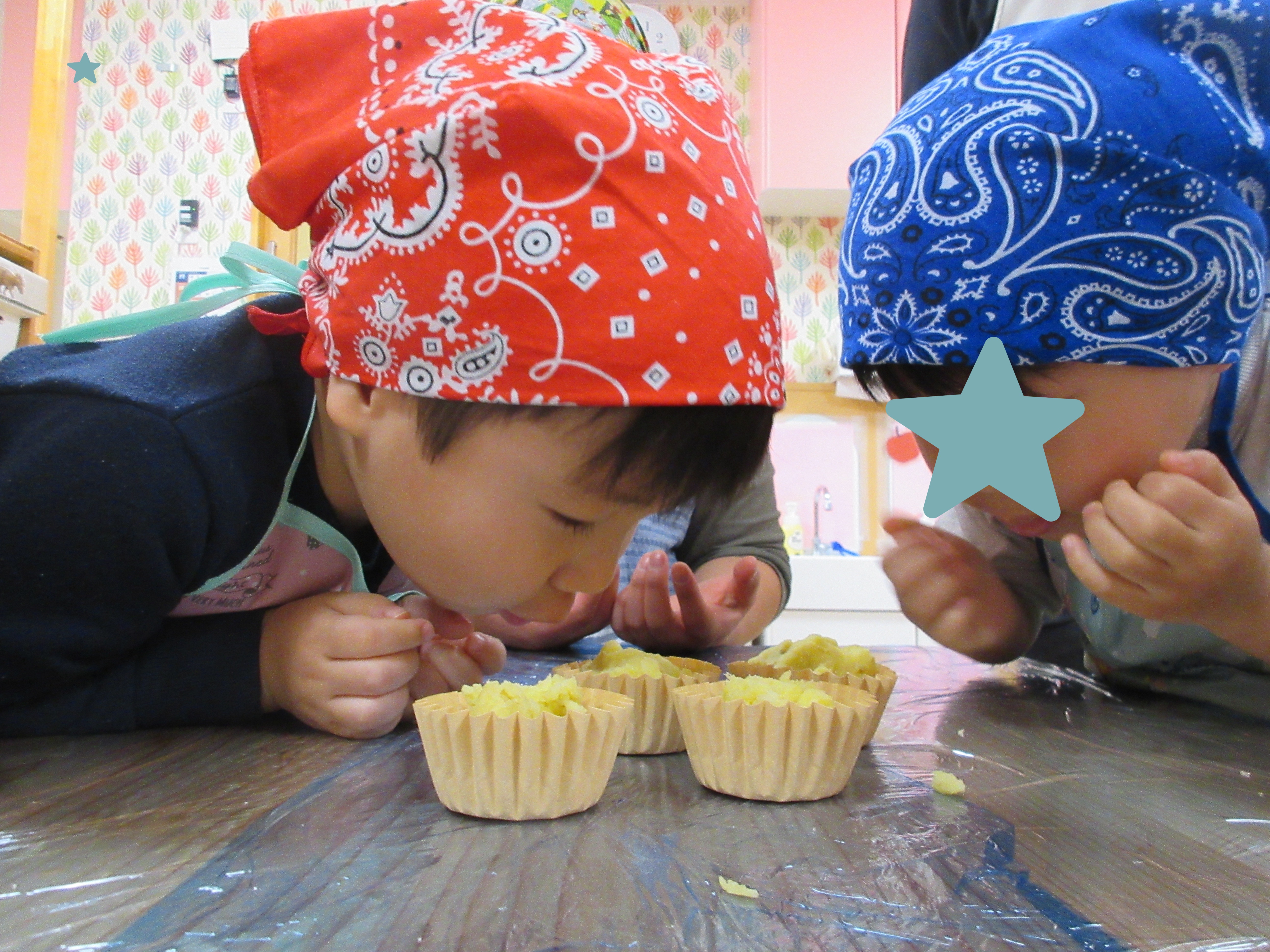 2歳児クラスは、カップに盛り付けまで楽しみました♪