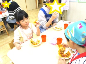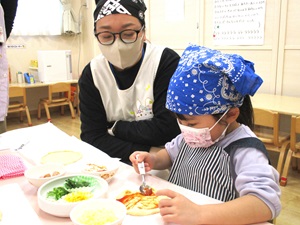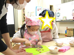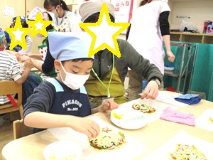 前日、年長のきりん組対象に親子クッキングを行いました。
