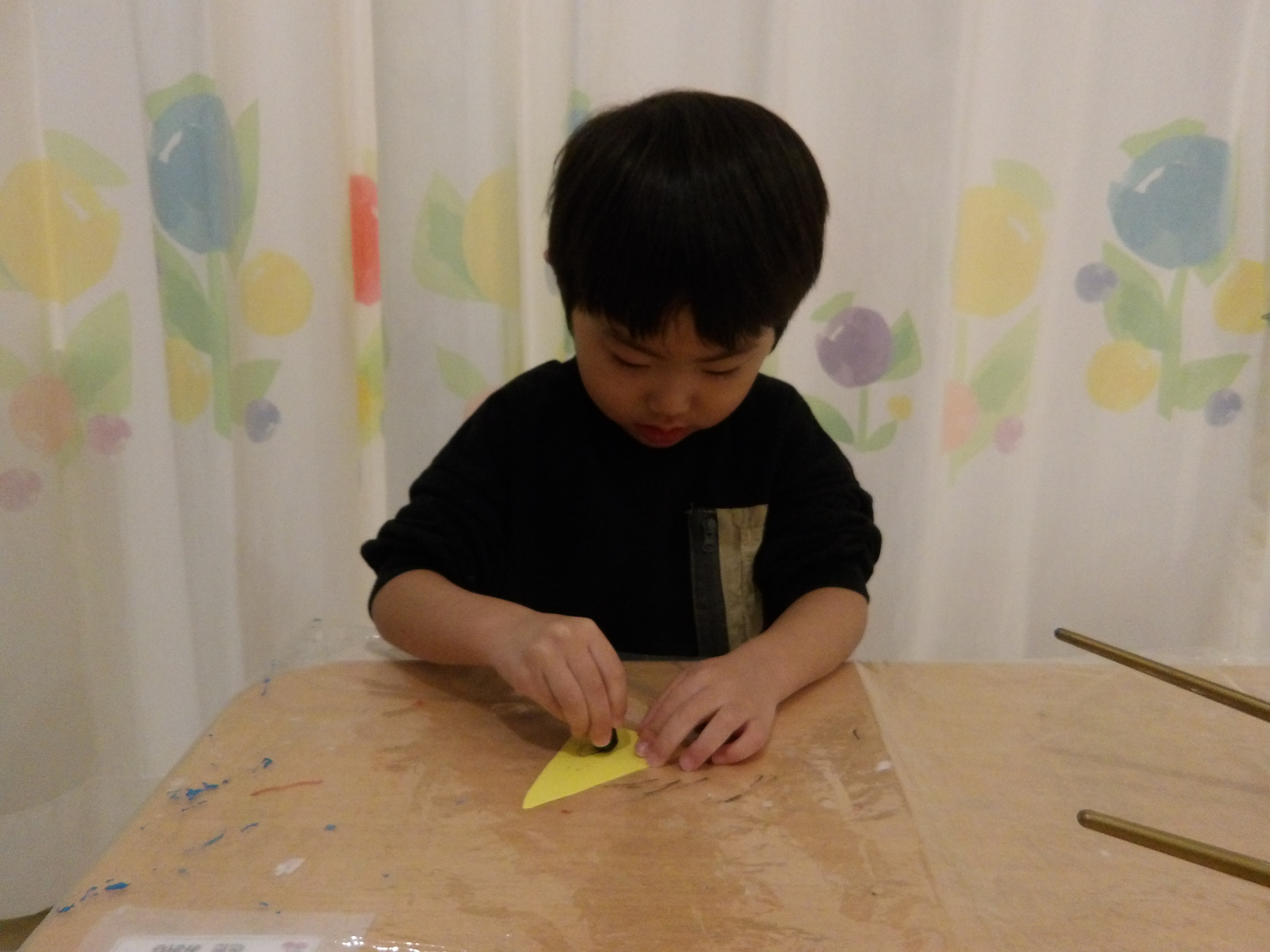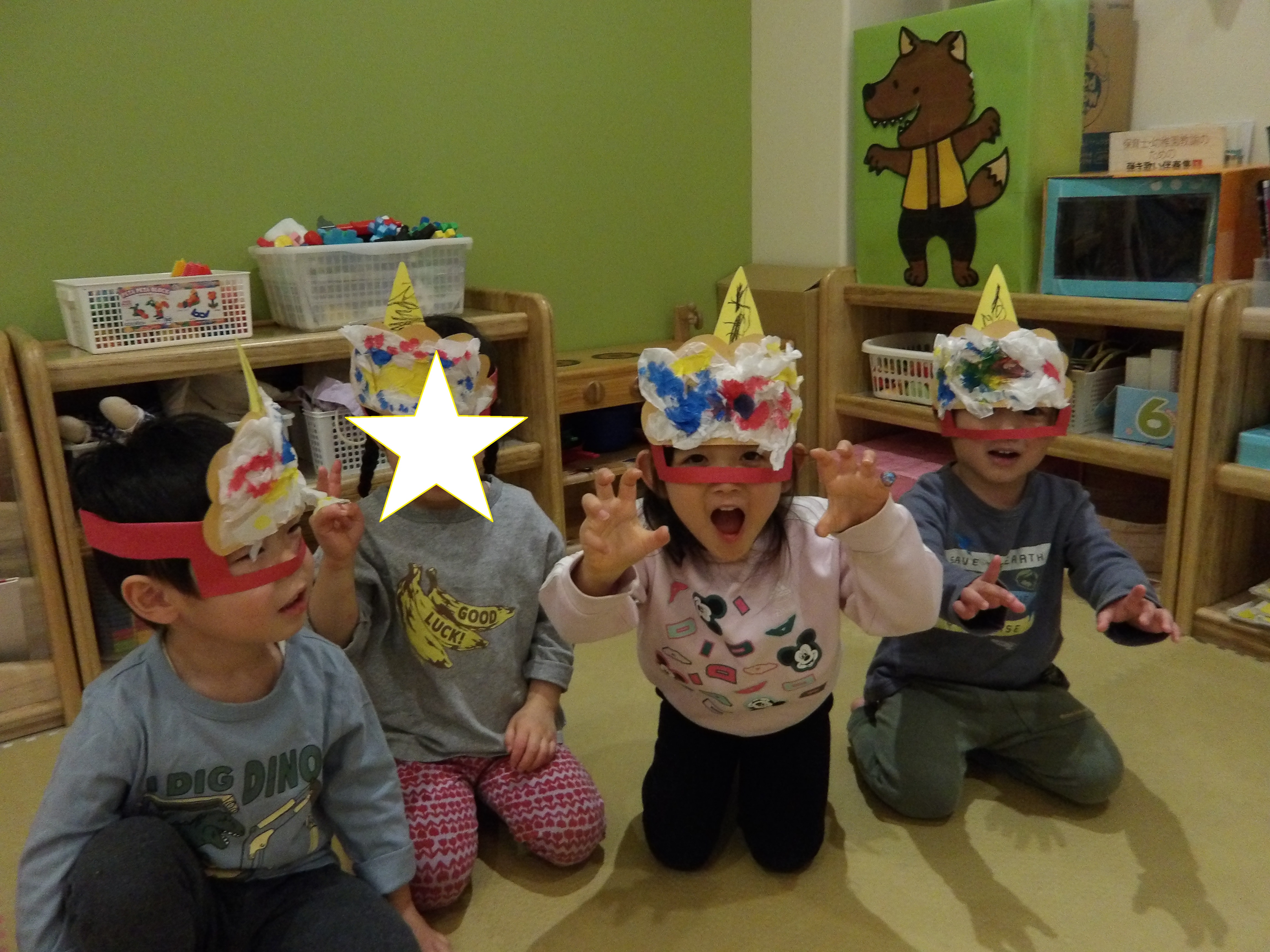 「鬼は外、福は内!」と元気に豆まきが出来るように、鬼のお面の製作を行いました!