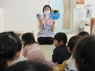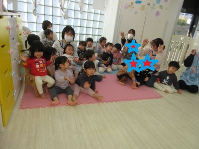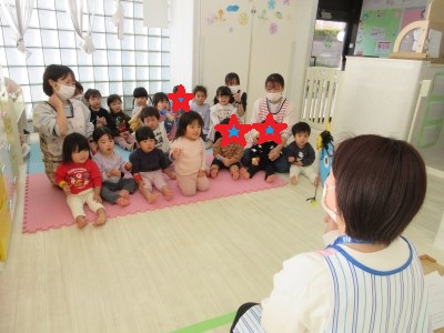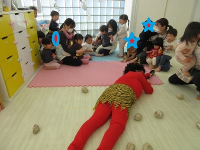 みんなは良いことをたくさんして、オニにならないように楽しく過ごそうね☆とお話しをして、最後は落ち着いた表情で終了。