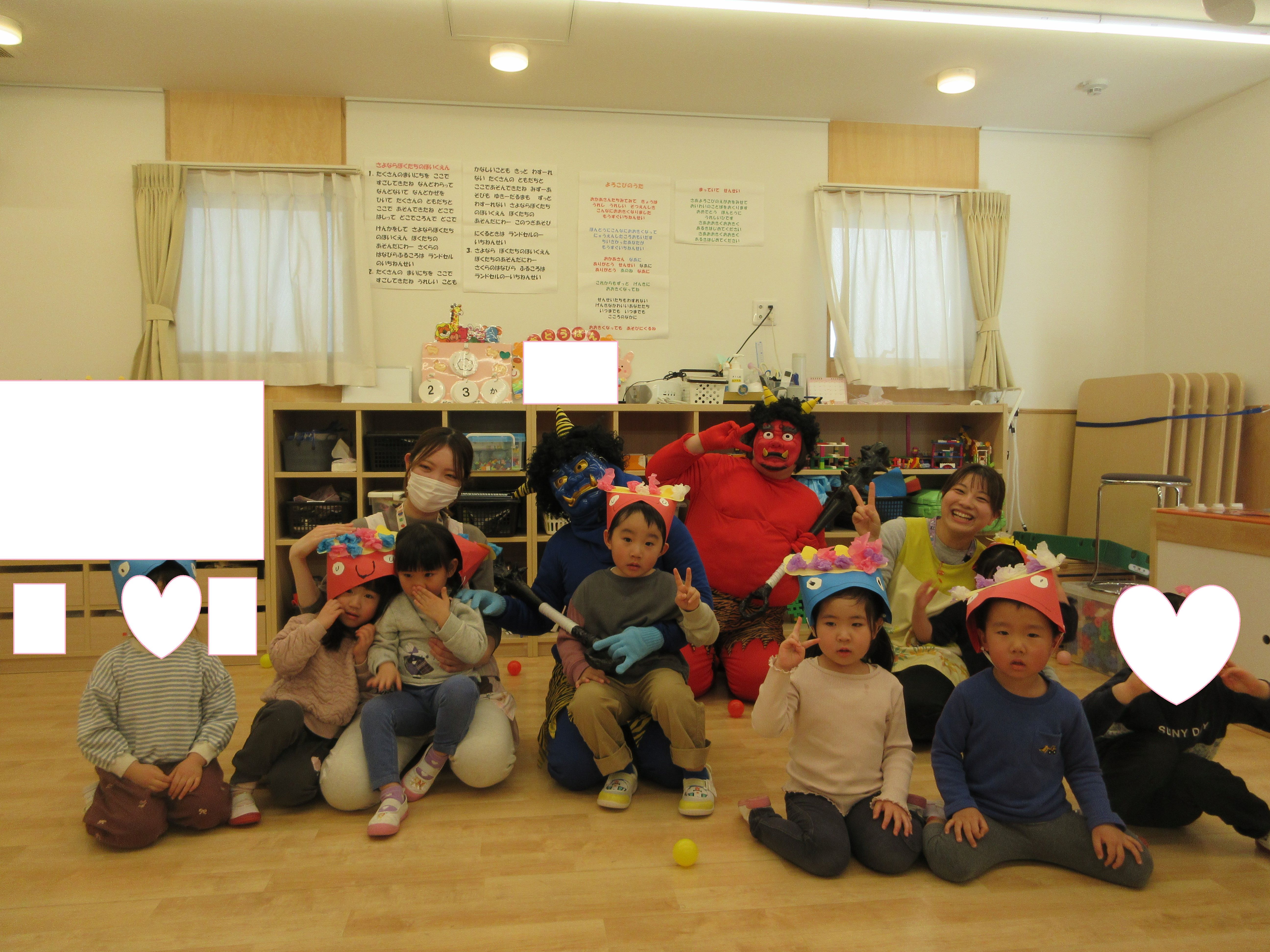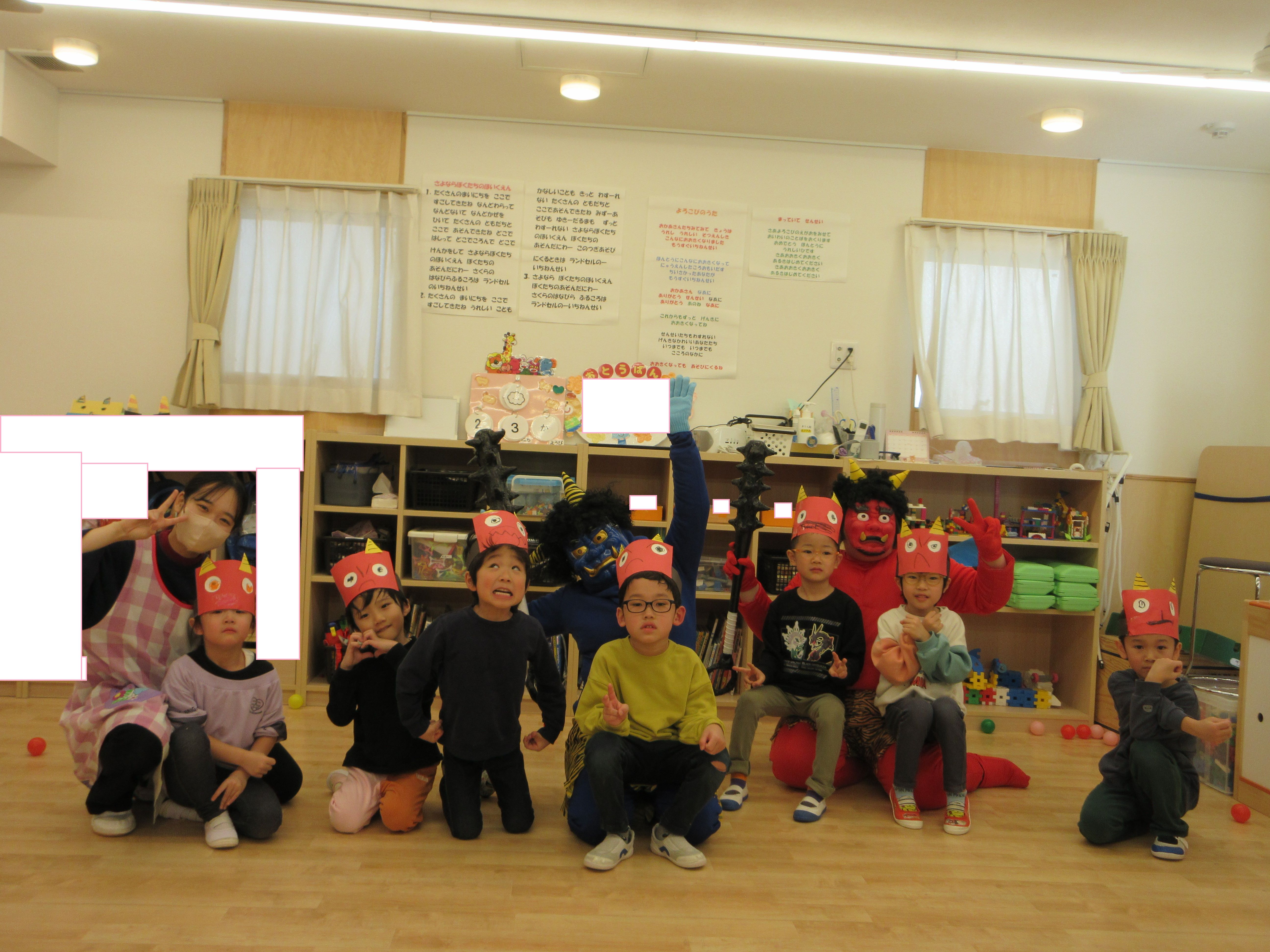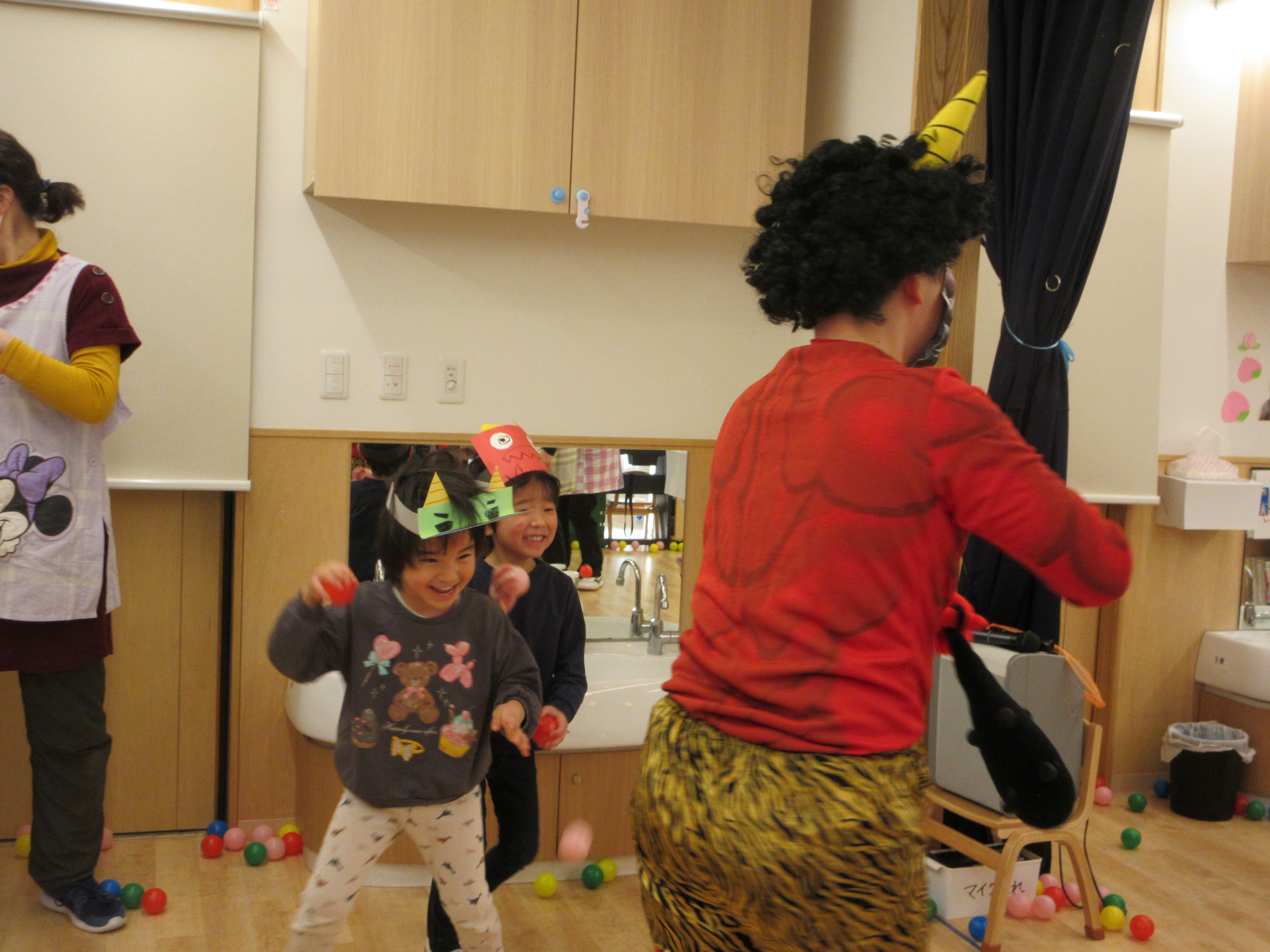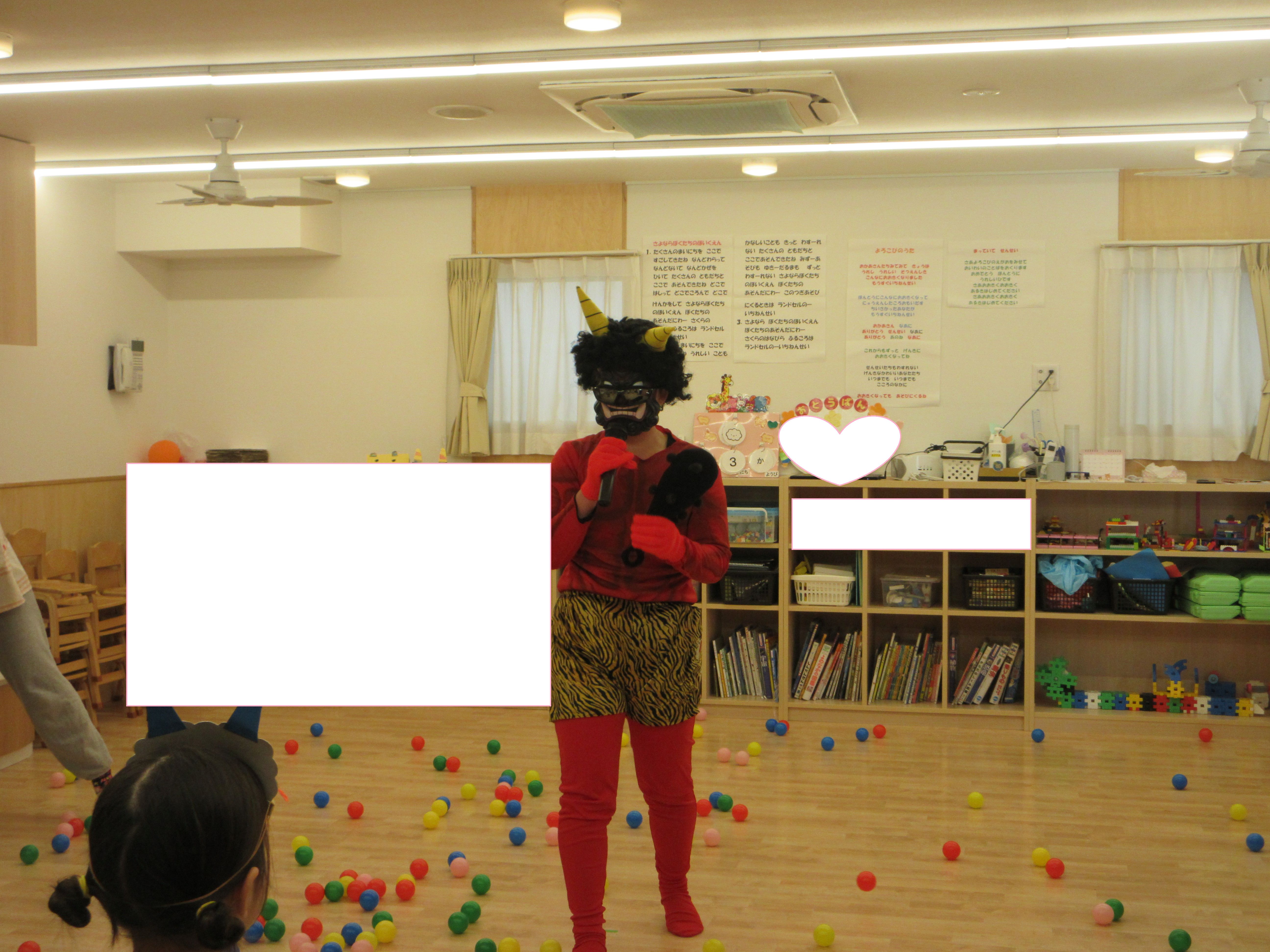 さあ、鬼が登場したので、みんなで豆まきの始まりです!!
