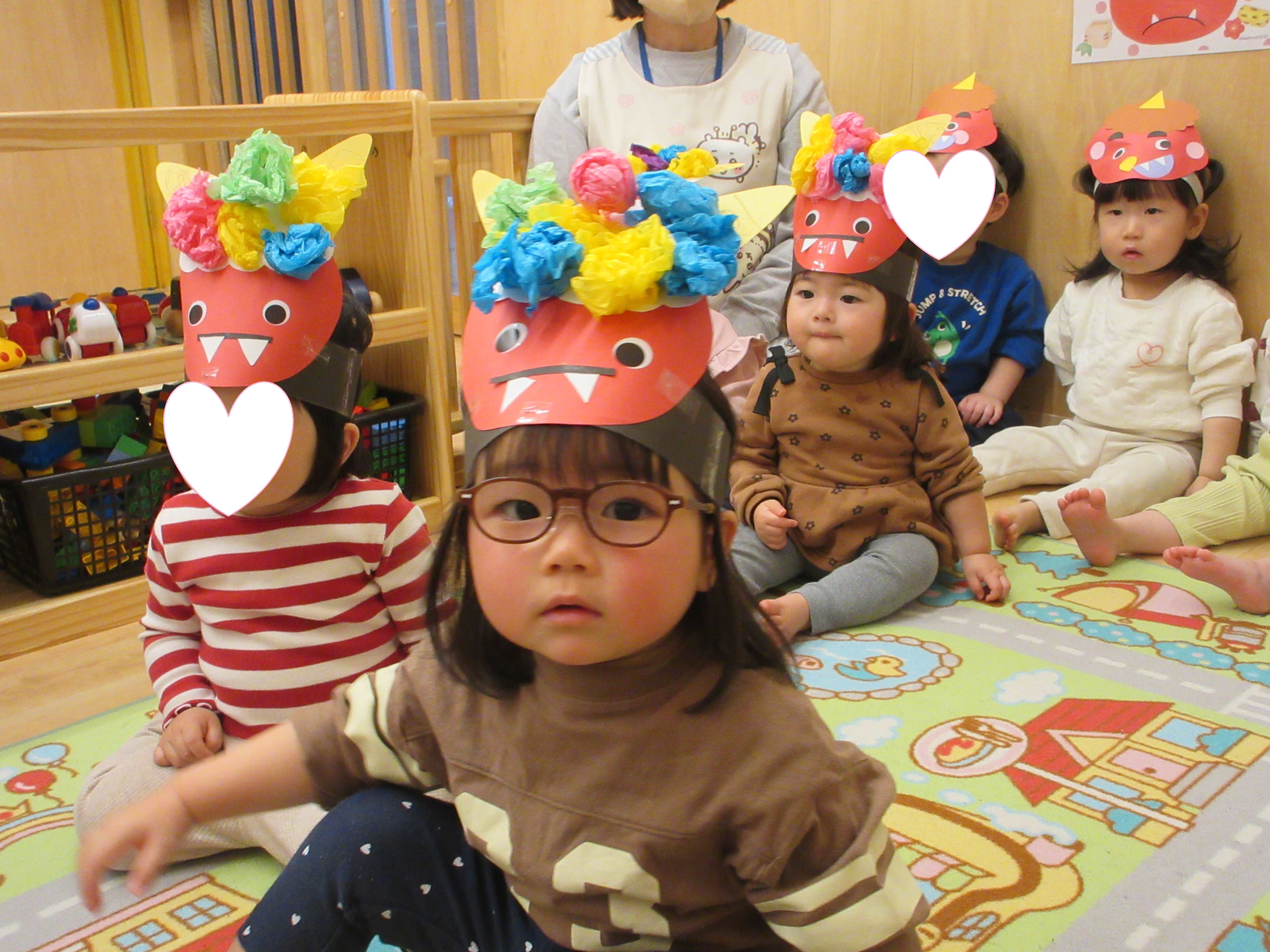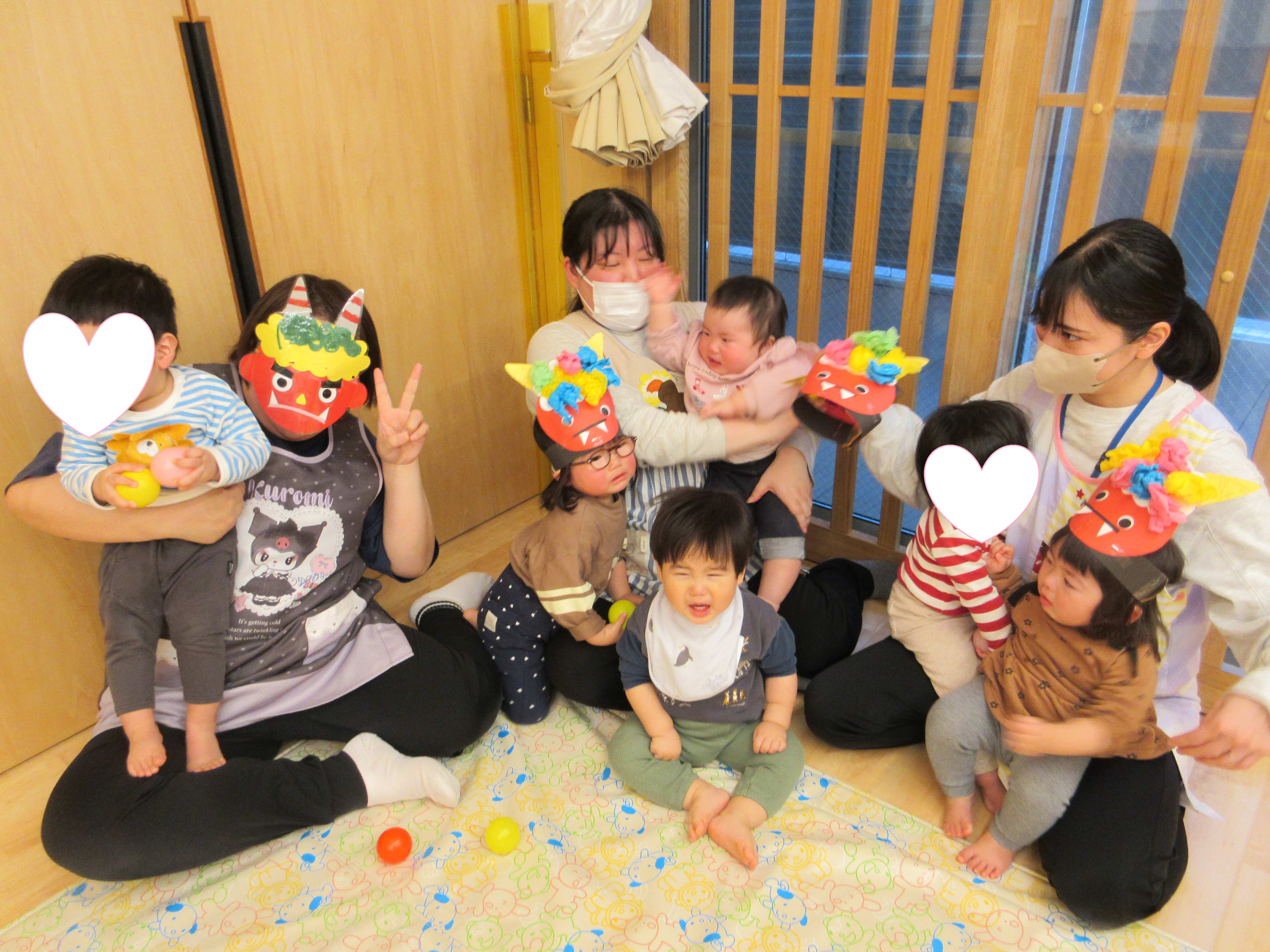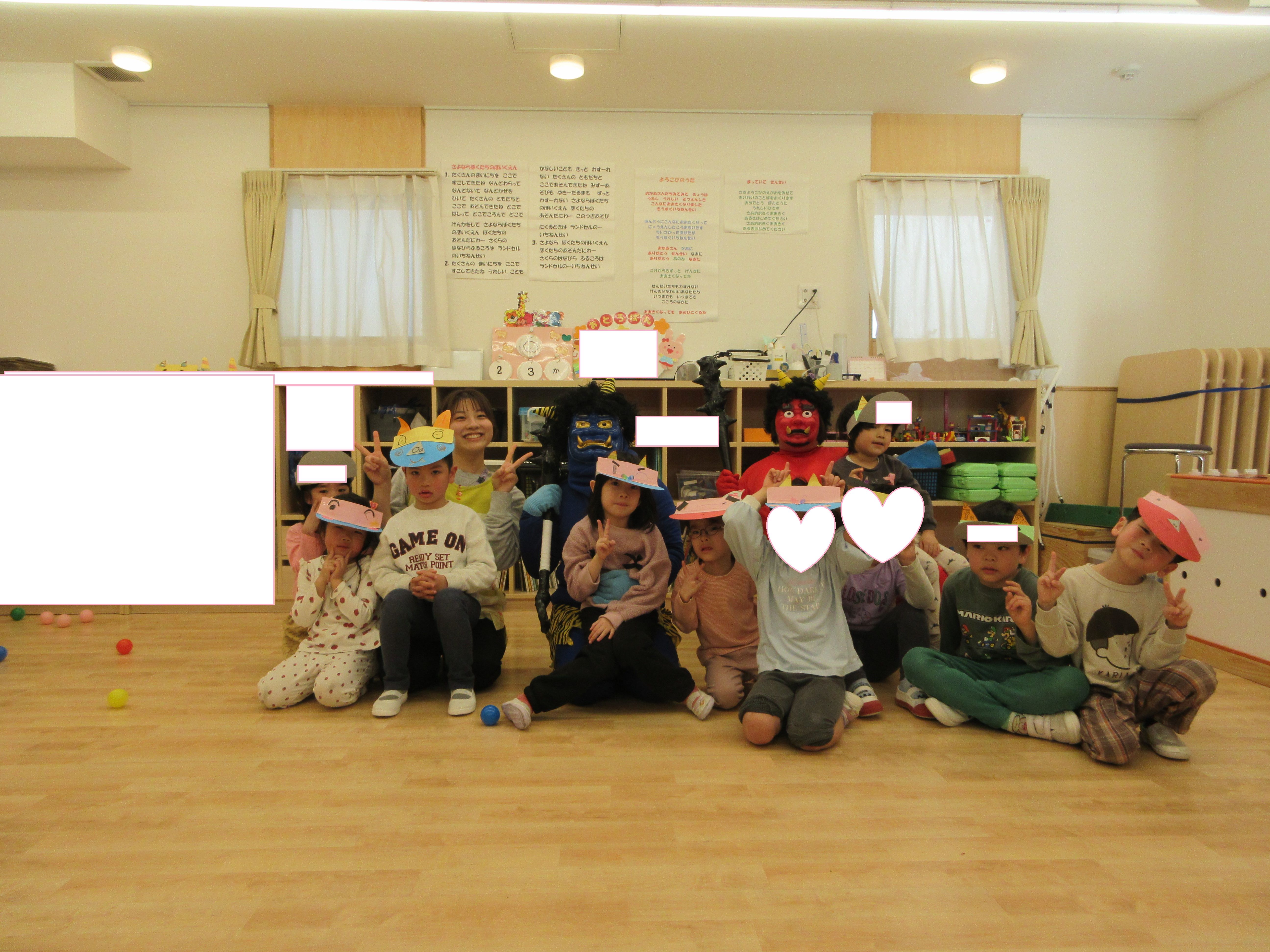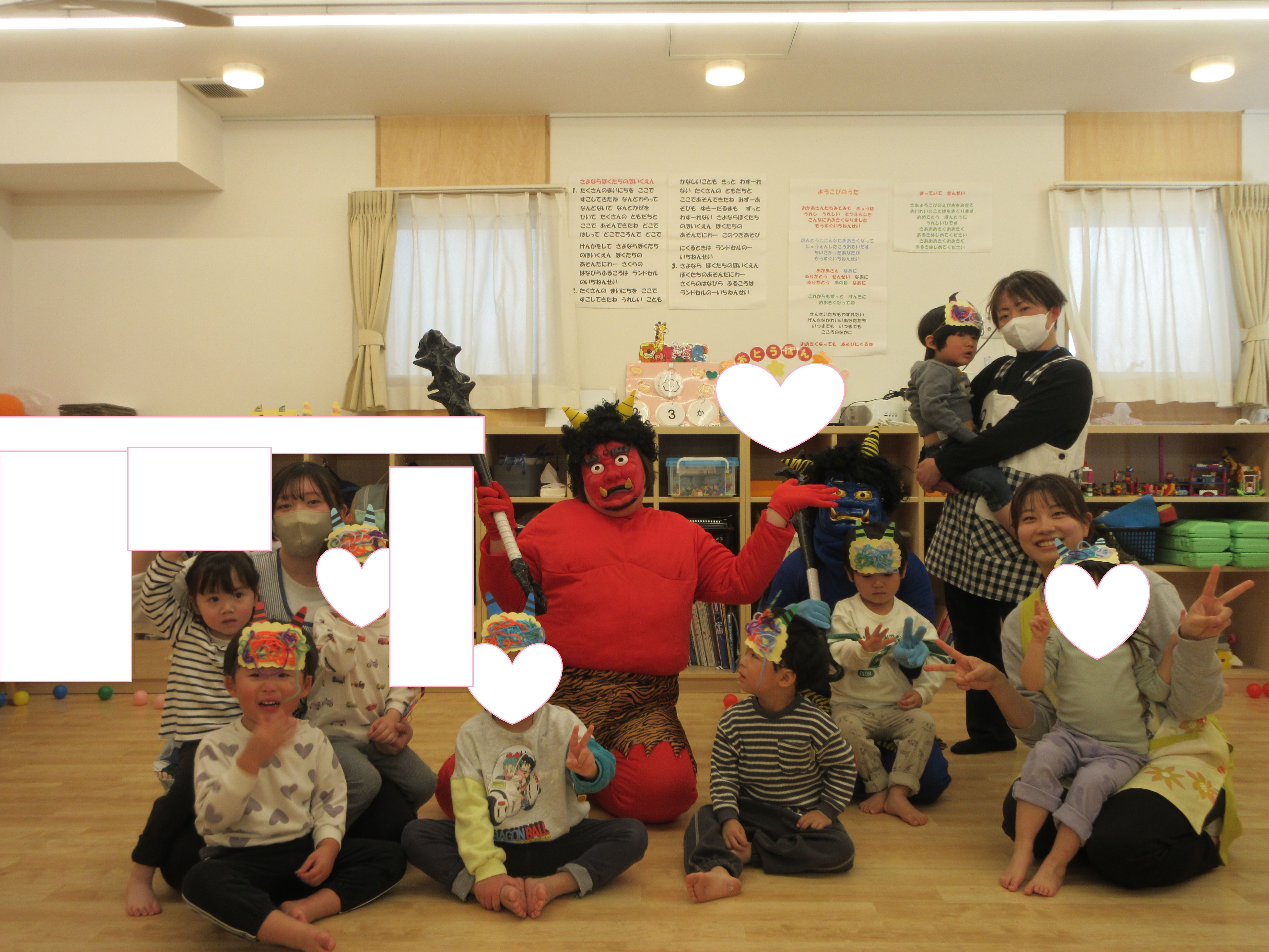 さあ、鬼が登場したので、みんなで豆まきの始まりです!!