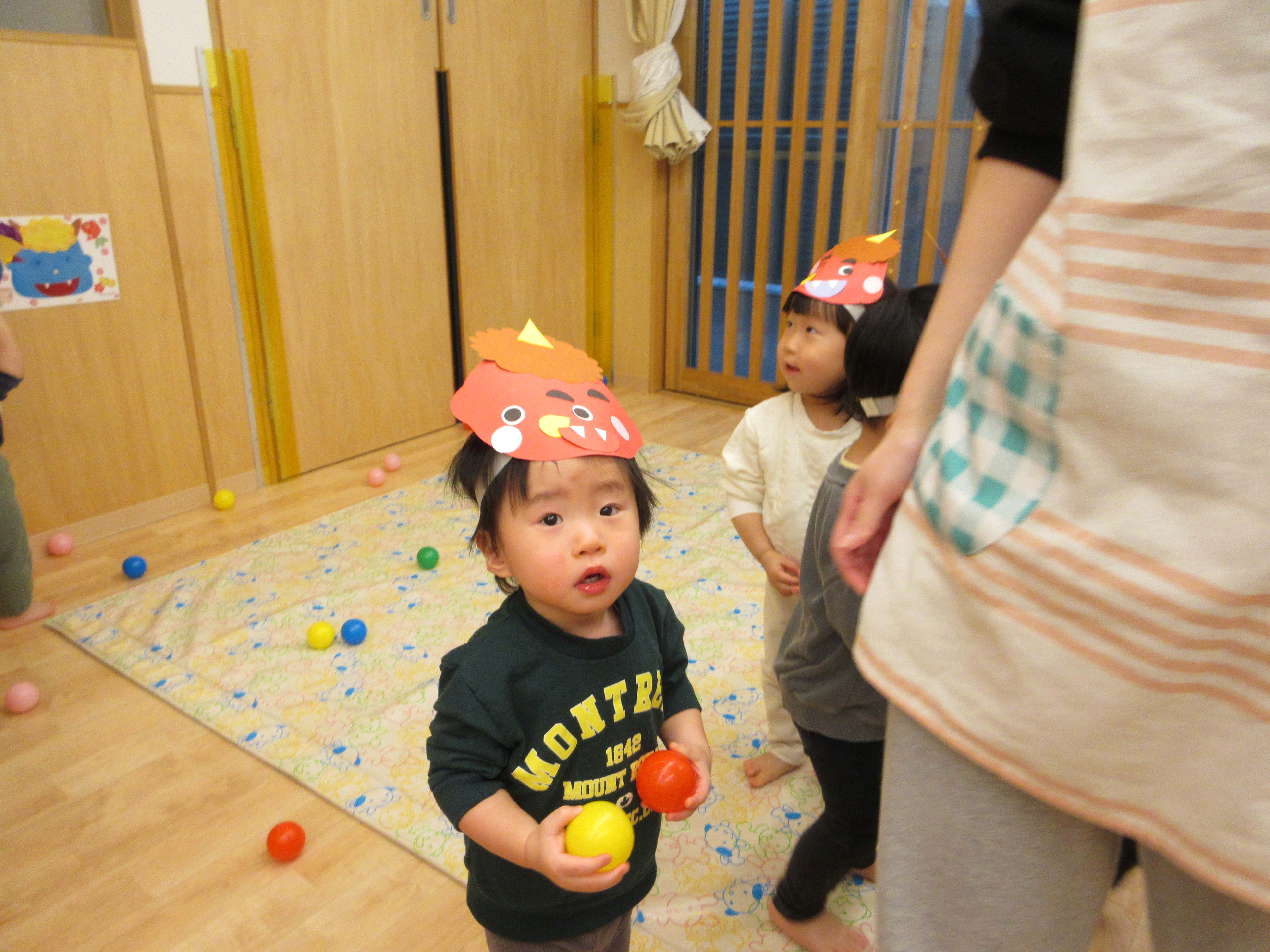 ボールを鬼にめがけて力いっぱい投げました(*'▽')!!