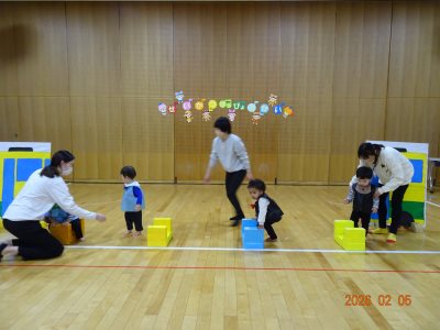 2月になり益々体力がついてきた、0歳児のゆめぐみのお友だち。