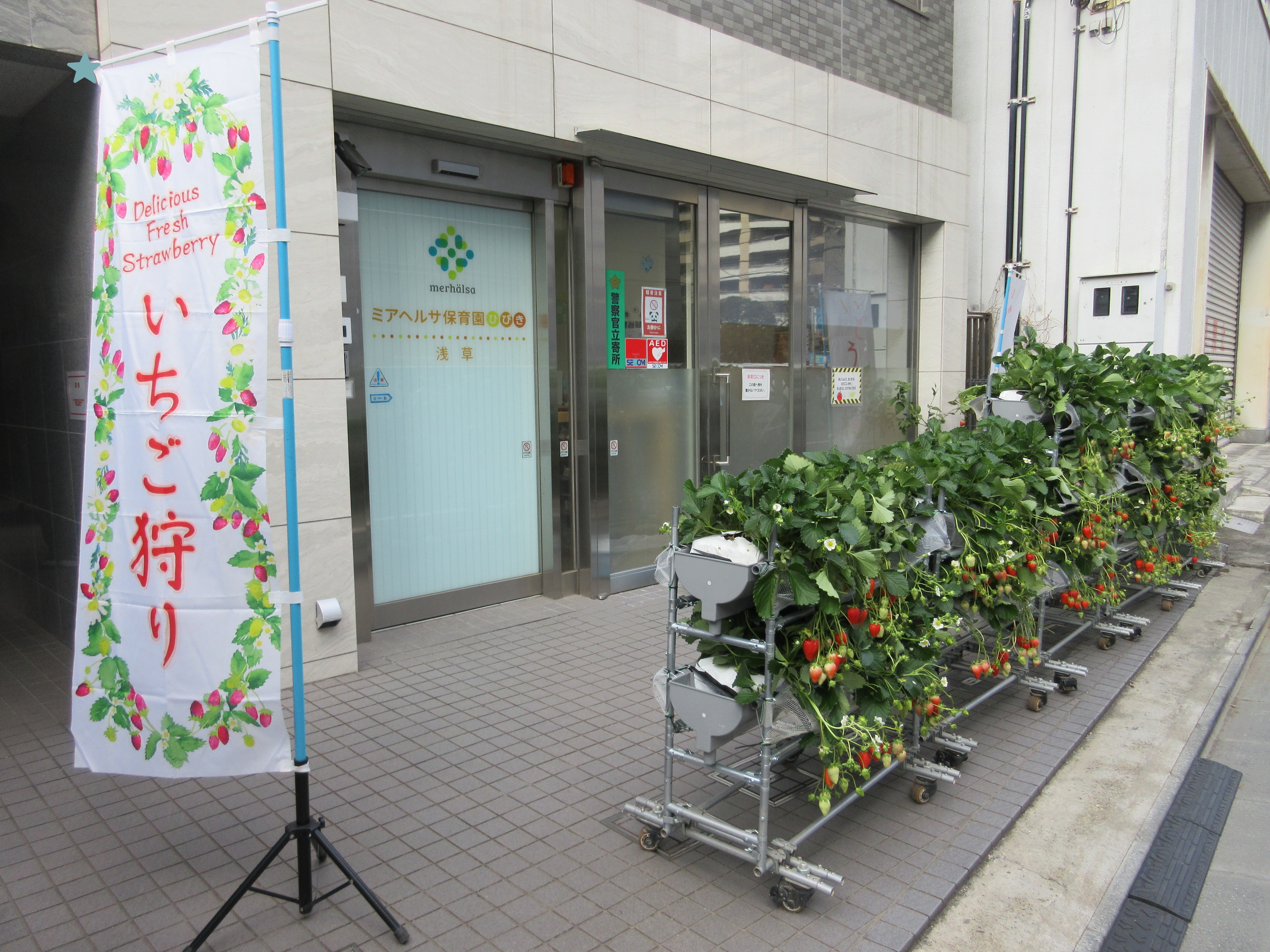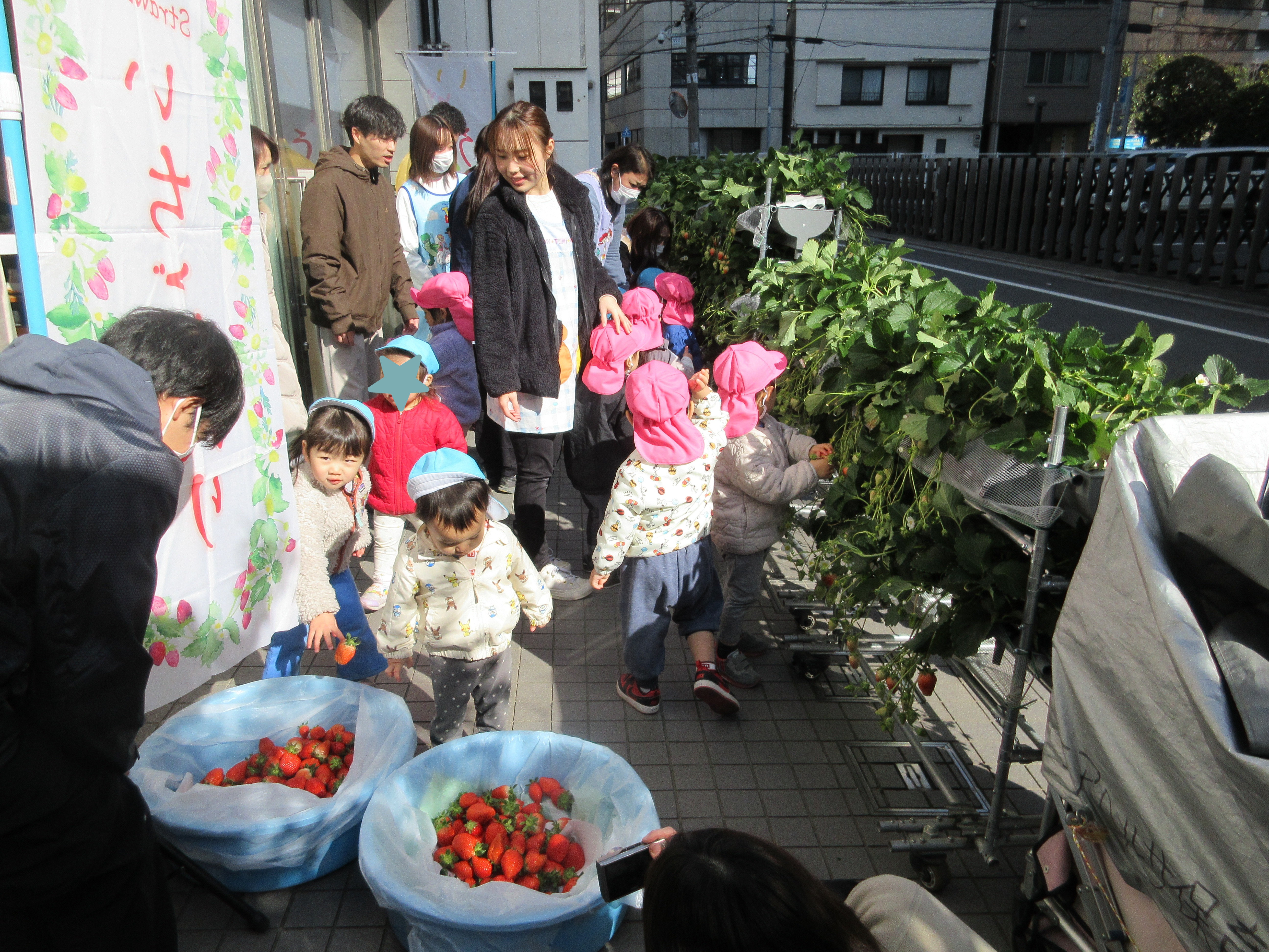 なんと!保育園の前にいちご畑が!!