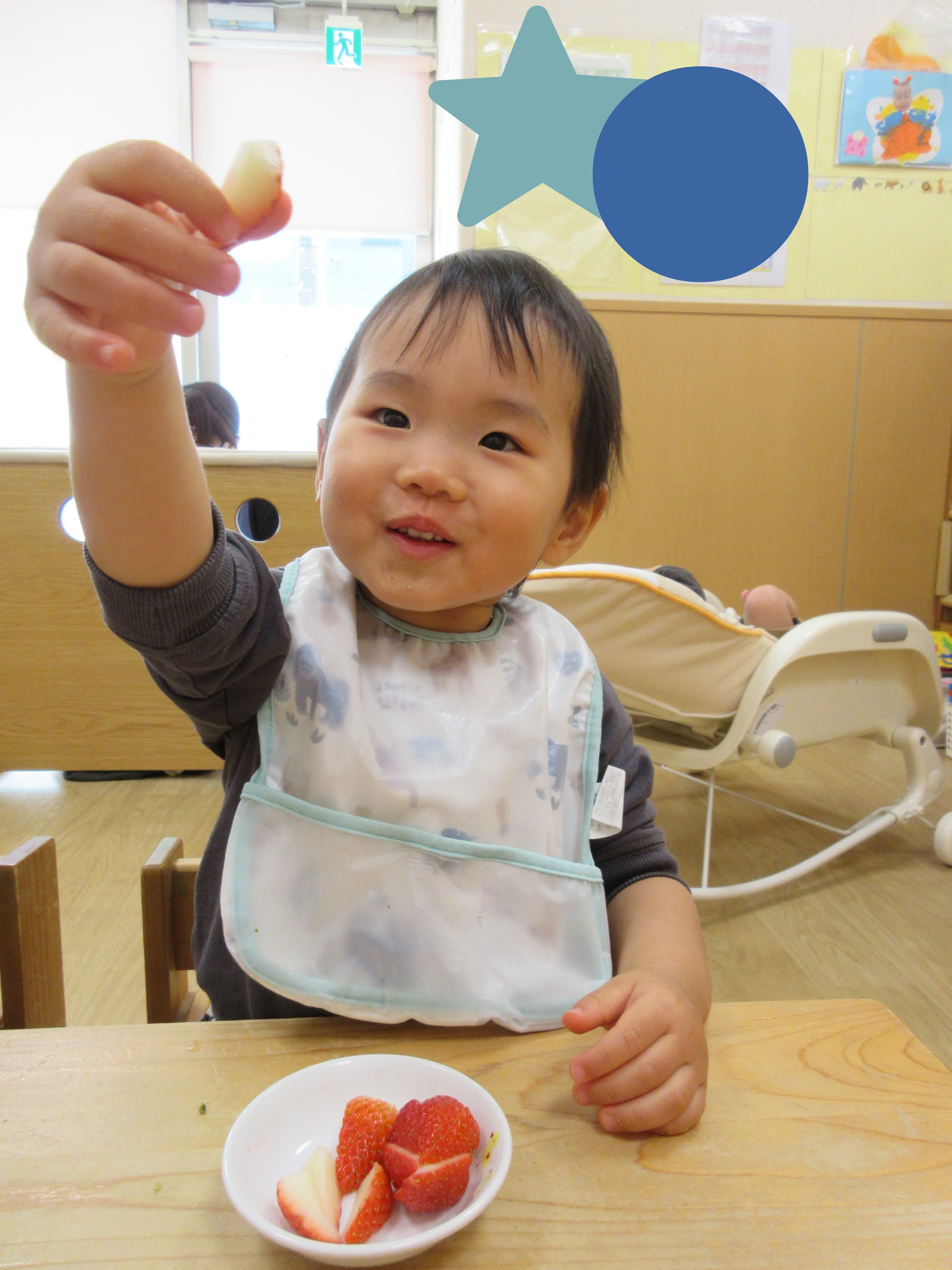 自分で摘んだいちごは、早速お給食で食べました♡