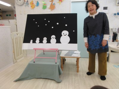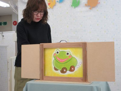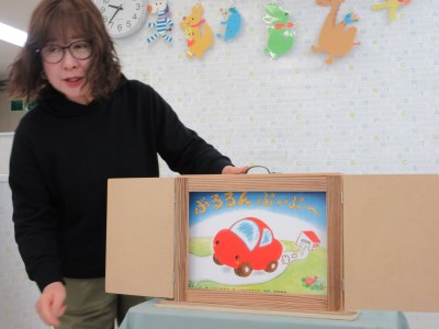お次は紙芝居!紙芝居の箱が出てくると「なにかな、なにかな?」とワクワク♪