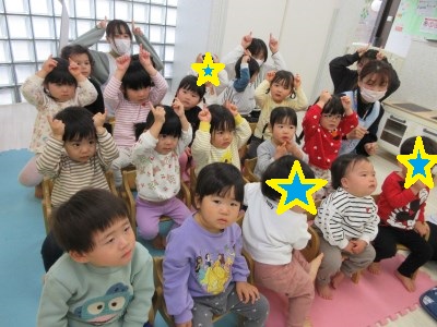 天狗→おかめ→ひょっとこ→はんにゃのポーズをしながら手遊びを楽しみました(^^)/