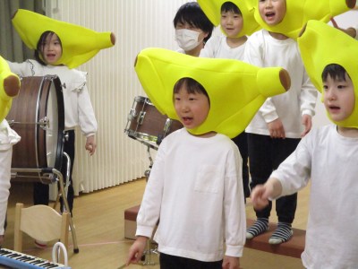 バナナの被り物はサプライズ演出で、保護者の方も大喜びでした!