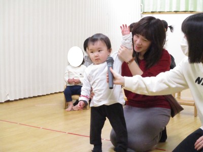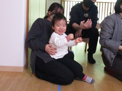 『とんとんとんとん ひげじいさん』『キラキラ星』の手遊びやリズム遊びも、笑顔を浮かべて楽しんでいましたよ。