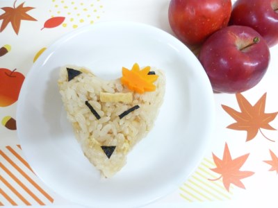 油揚げ入りのきつねごはんできつねの顔を作りました。