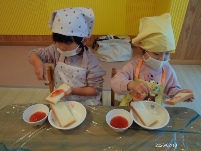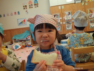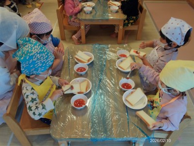 2月の2歳児食育活動は【ジャムサンド作り】でした(^^♪