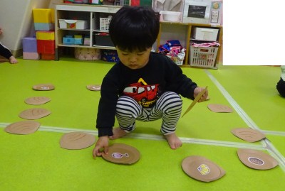 1歳児さんと2歳児さんは貝合わせの神経衰弱ゲーム。