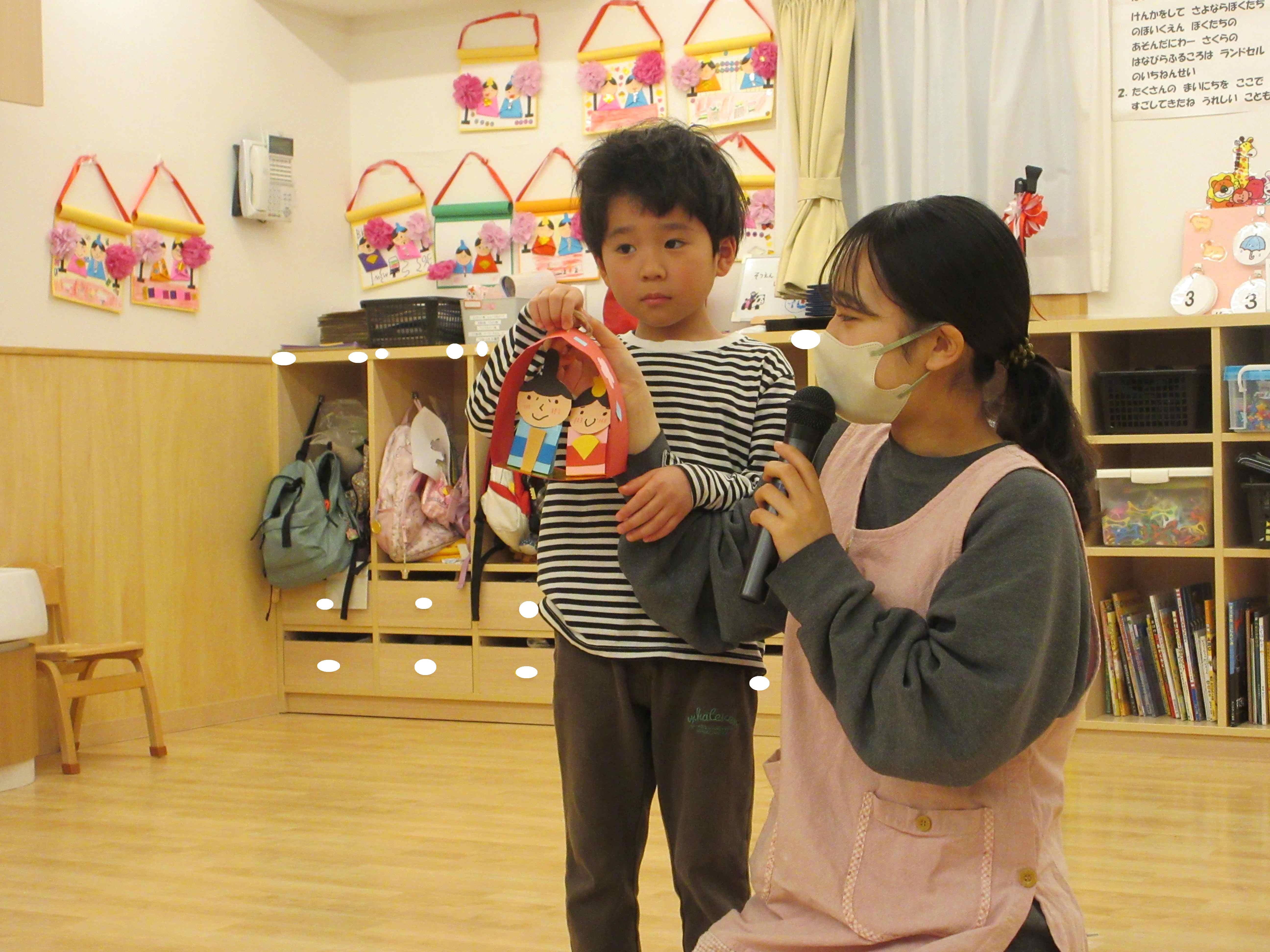 最後は各クラス毎に製作したひな人形の紹介をしました。