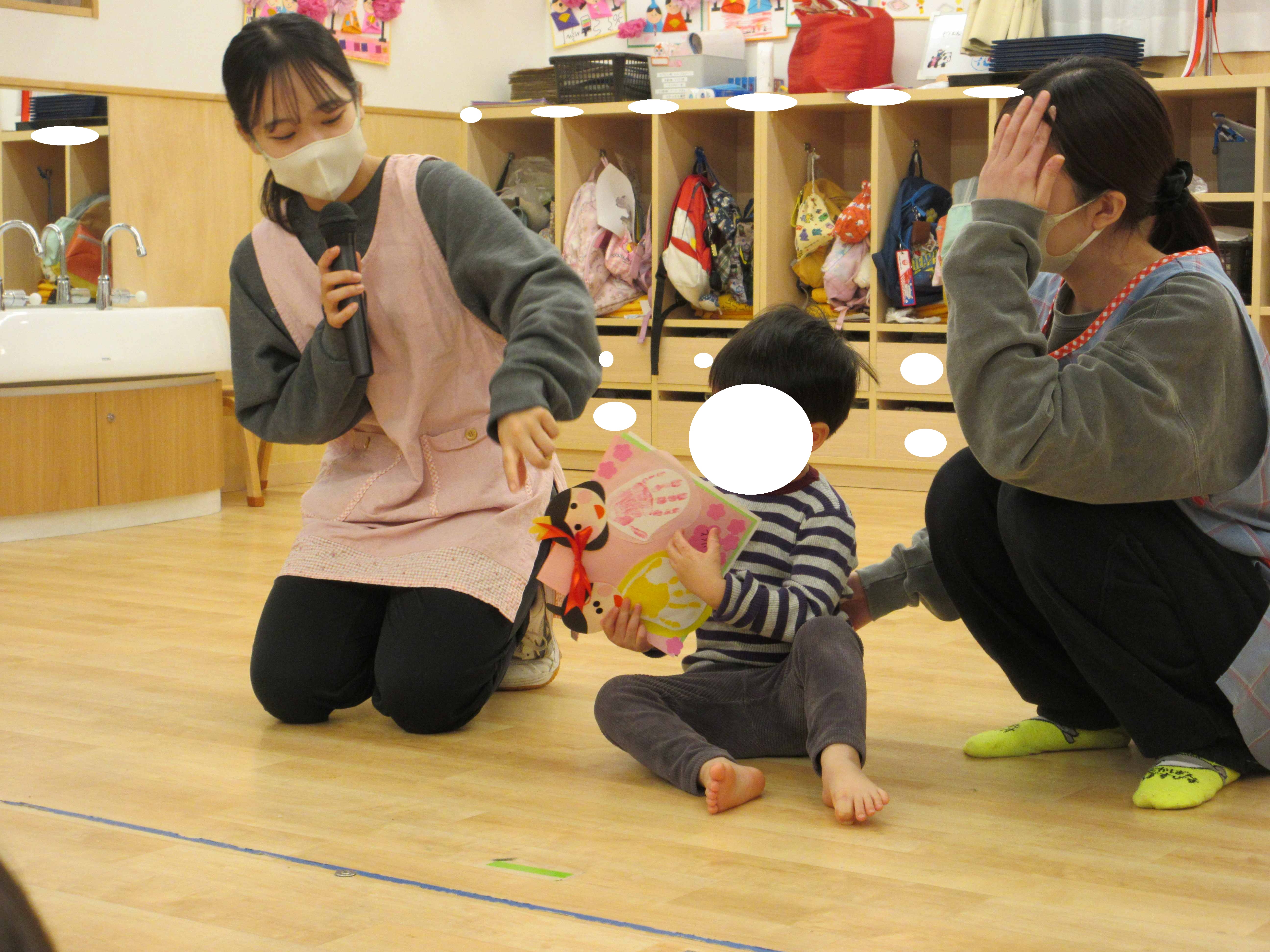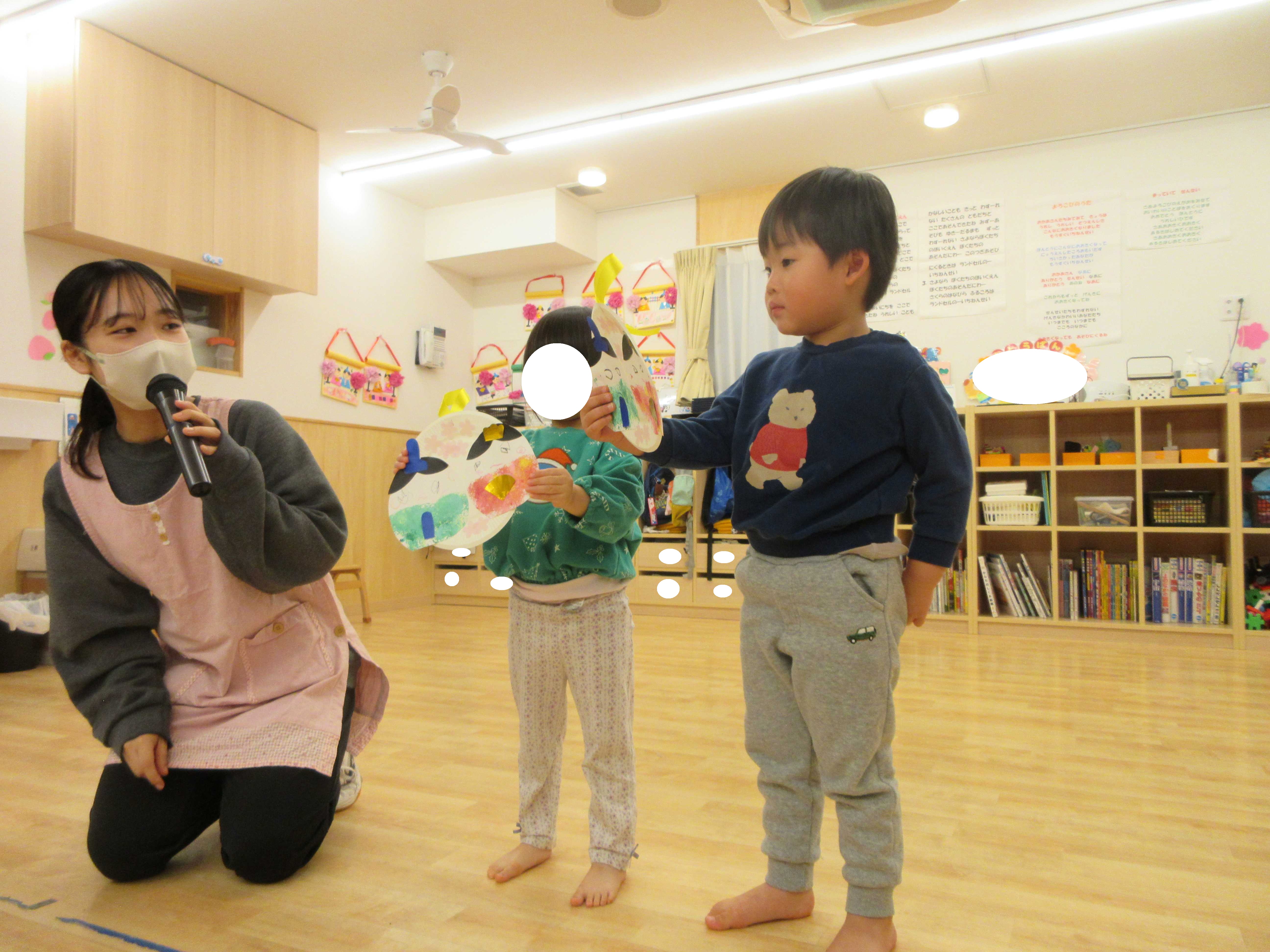 うさぎ組、ぱんだ組、きりん組のお友達は、製作の頑張ったところも教えてくれましたよ!