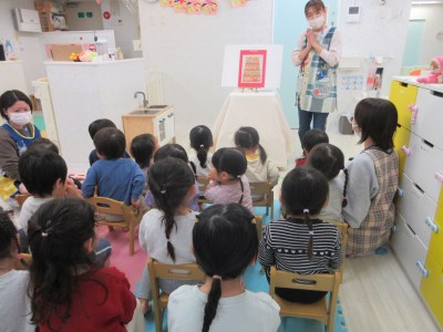 ちょっとしたクイズなどもあり、子どもたちは大喜び♪きりん組さんの中では、クイズに正解してガッツポーズをするお友だちもいました(≧▽≦)