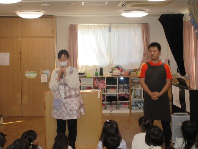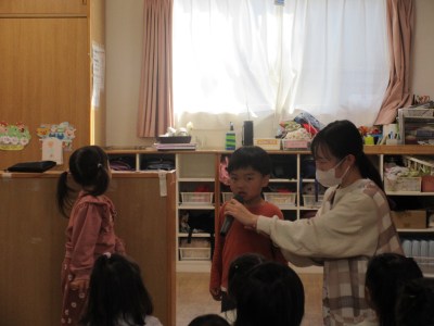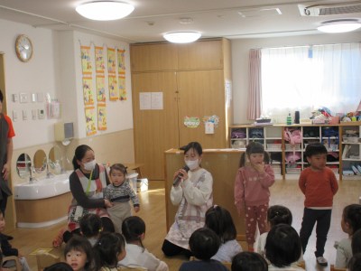 こんにちは、 ミアヘルサ保育園ひびき矢向です♪ 2月の誕生日会の様子をお伝えします。 好きな食べ物を教えてもらいました。 先生たちが同時に喋って、 何を言っているか当てるゲームを行いました☆ みんな楽しんでいました☆
