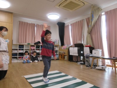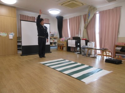 こんにちは、 ミアヘルサ保育園ひびき矢向です。 交通安全教室の様子をお伝えします♪ 警察の方から交通安全の説明してもらいました。 警察の人に見本を見せてもらいました。 右左右を見て、手をあげて渡る練習をしました。 交通ルールばっちり覚えました♪