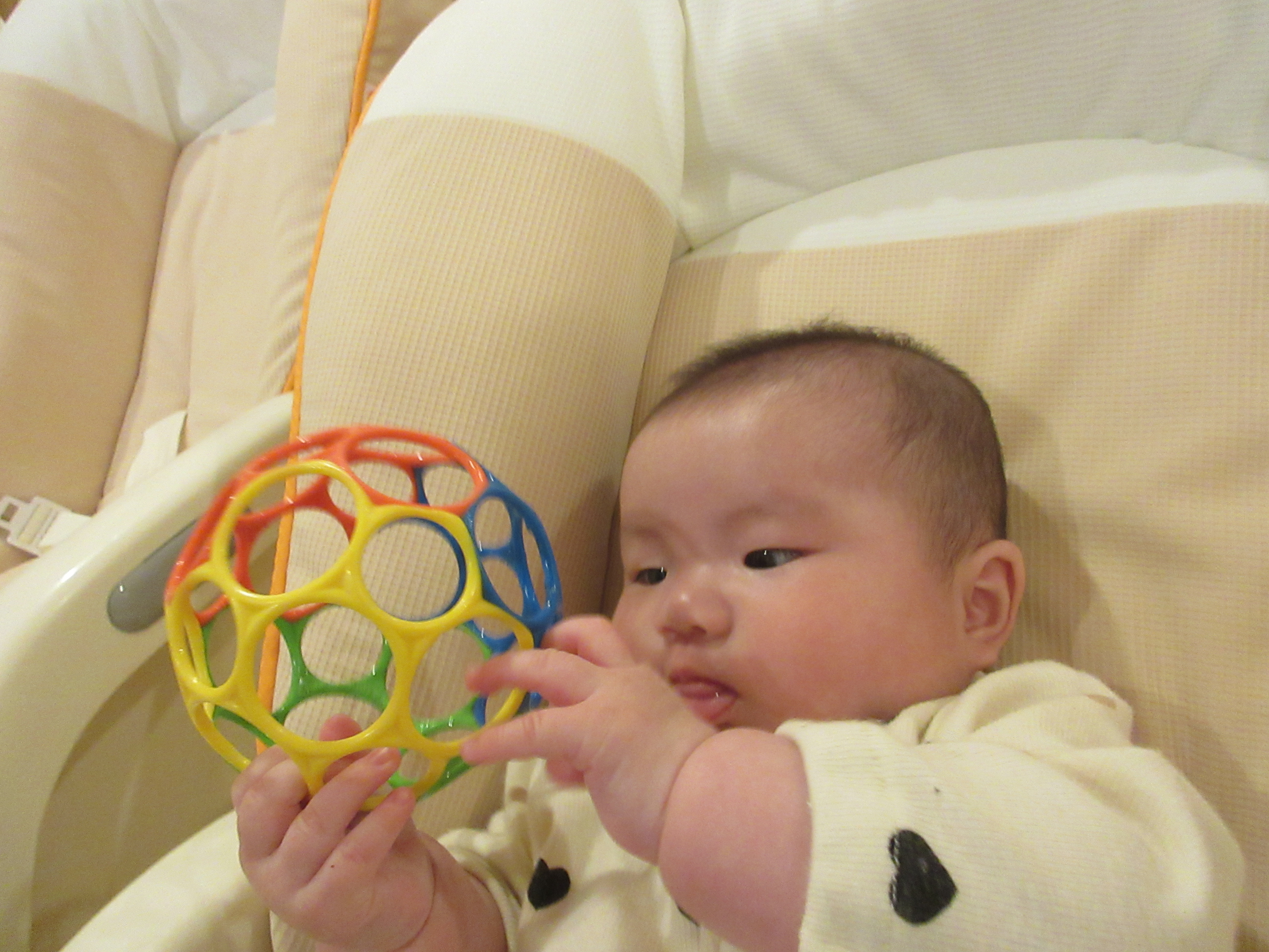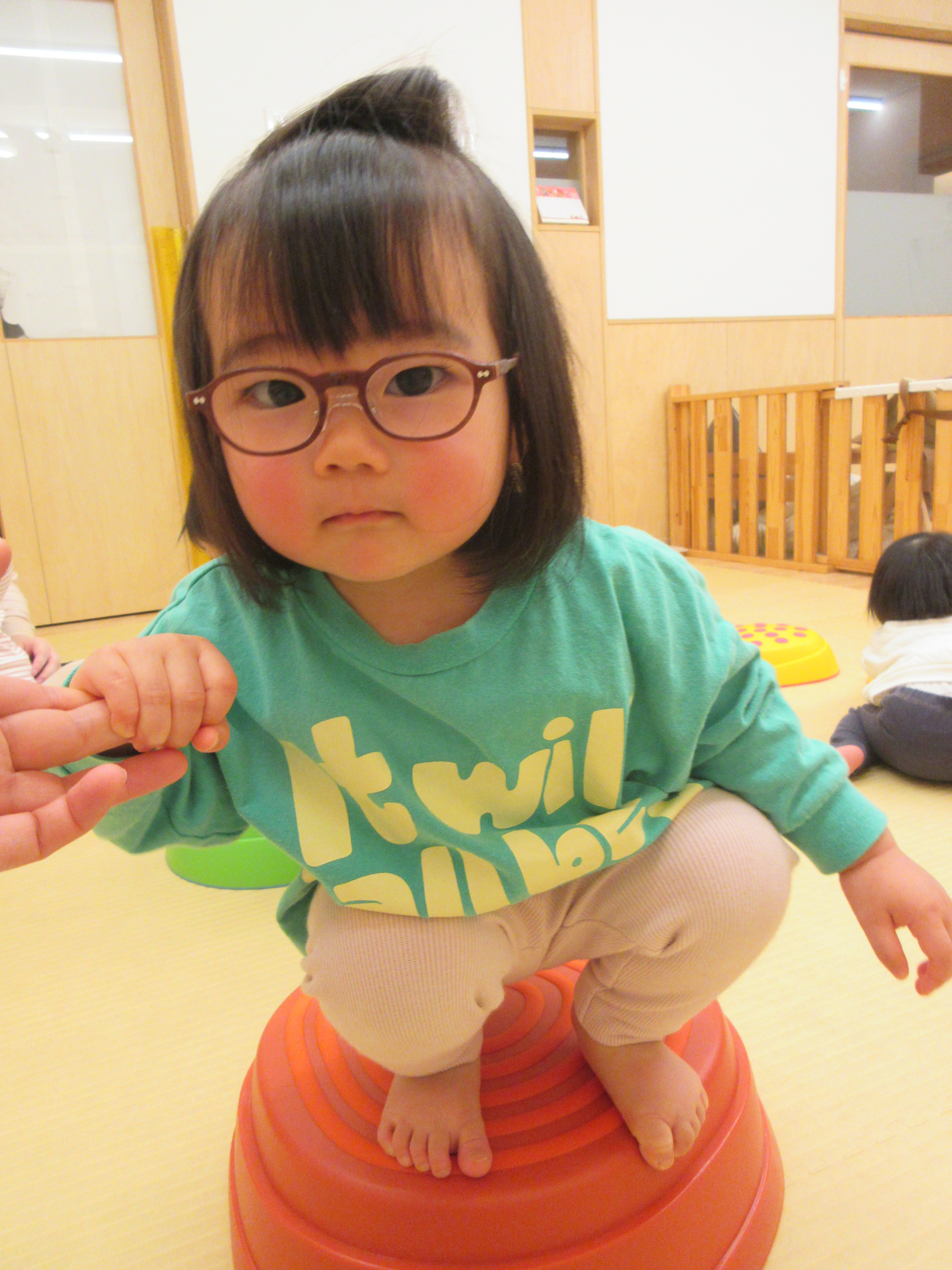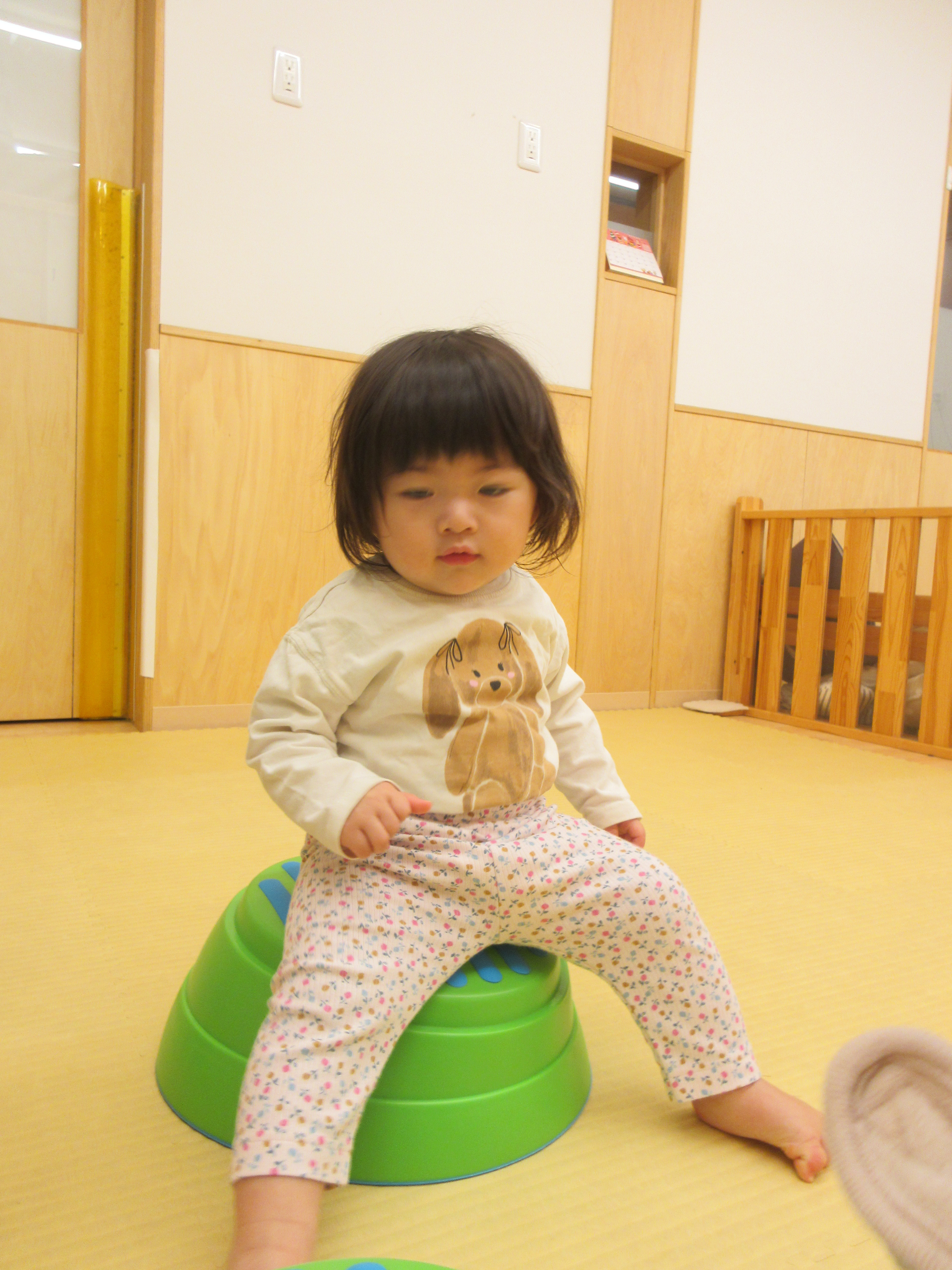 バランスボードを用意すると、自分から乗ったり、お椅子のように座っていました!