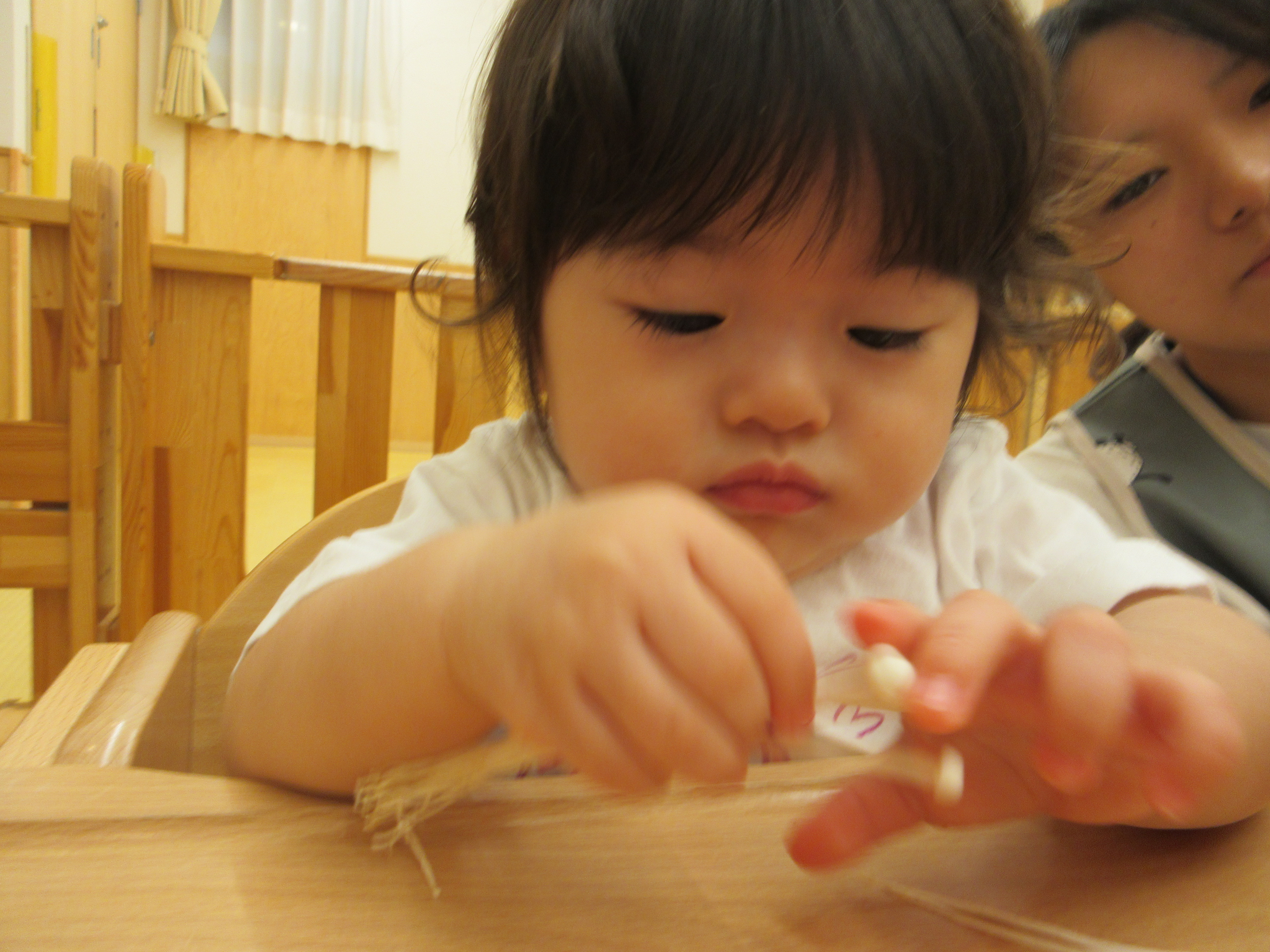 食育ではきのこをほぐしたり、野菜を触ってみました。