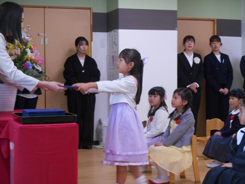 保育証書授与では、園長先生の目をしっかりと見て受け取っていました。