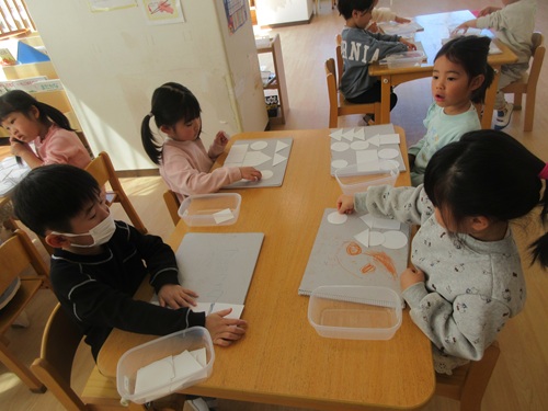 1年間で、自分のイメージを広げながら表現することが増えました。これからも子どもたちの素敵な発想や表現を大切にし、残り少ないそら組での生活を楽しく過ごしていきたいと思います。