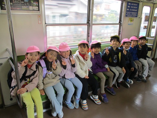 初めて電車に乗って遠足に行きましたが、約束事を守って乗車することができました。