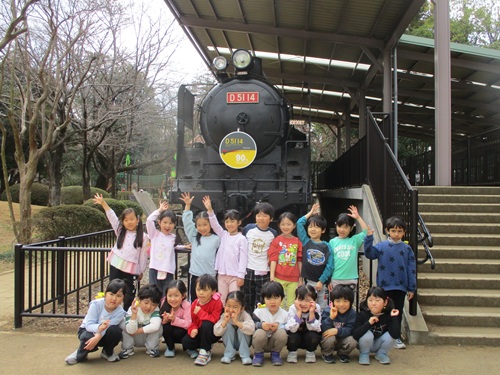 電車に乗って流山運動公園までお別れ遠足に行きました。