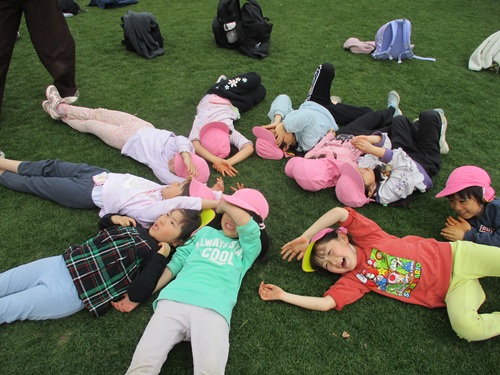 「芝生気持ちいね~!」とのんびり過ごしていました。
