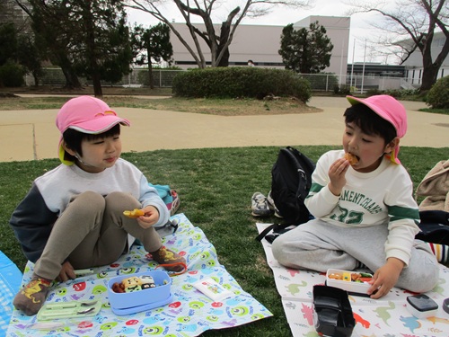 お弁当では「美味しいね!」「唐揚げ同じだね!」など楽しく会話をしながら食べていました。