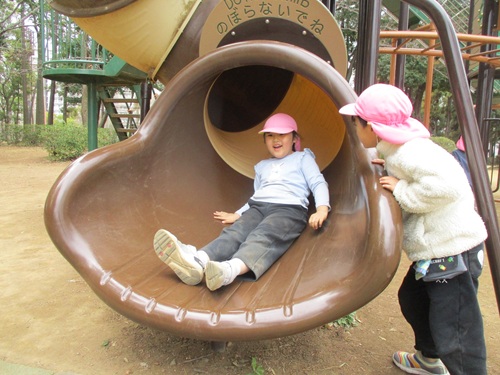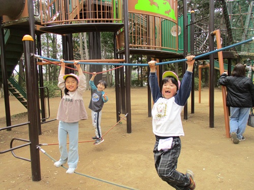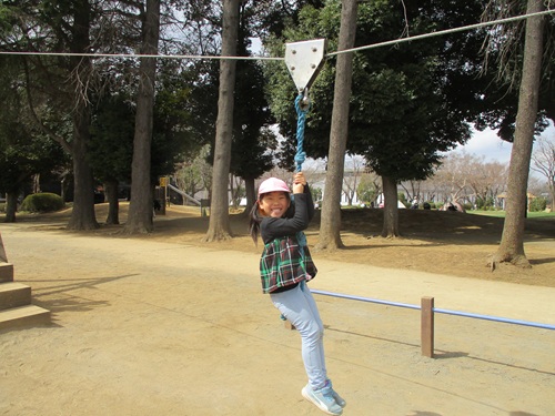 公園に到着しアスレチックや遊具で遊び始めると、全力で遊び楽しんでいました。