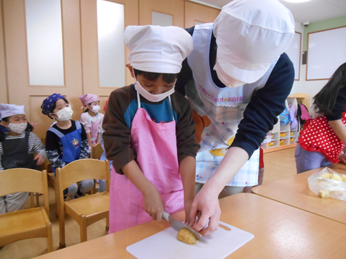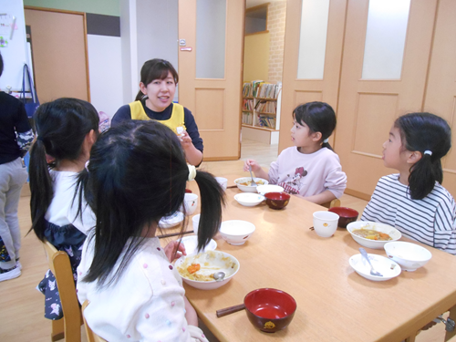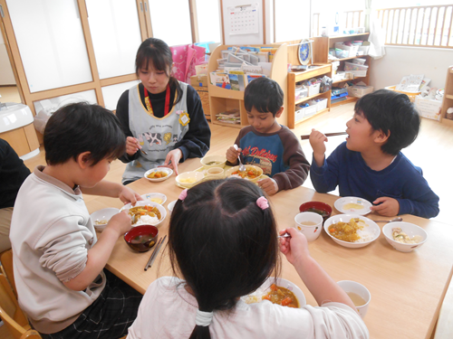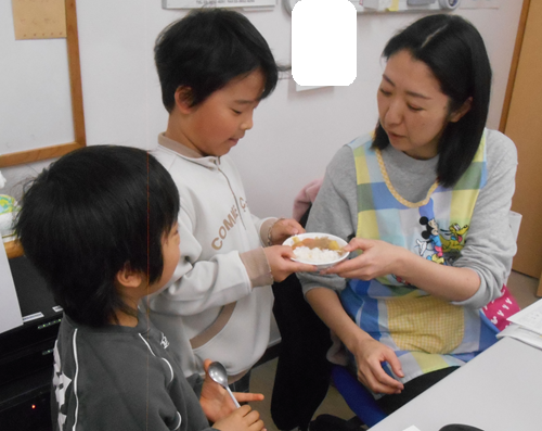 保育者にも「美味しい!」と言ってもらい嬉しそうな様子の子どもたちです。