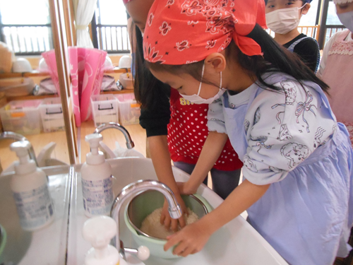 煮込んでいる間に、米とぎを行います。