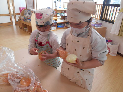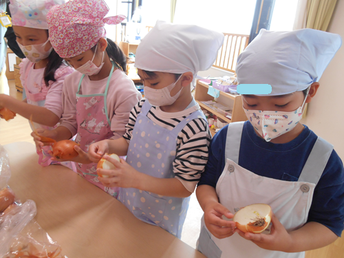 今日はにじ組で「カレー作り」の食育を行いました。