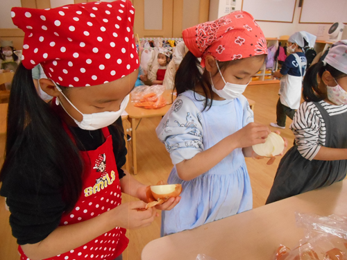 玉ねぎの皮むきも行いました。