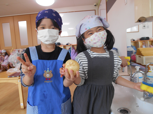 じゃがいもを洗います。