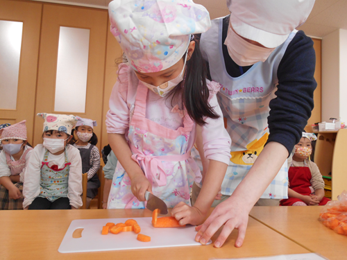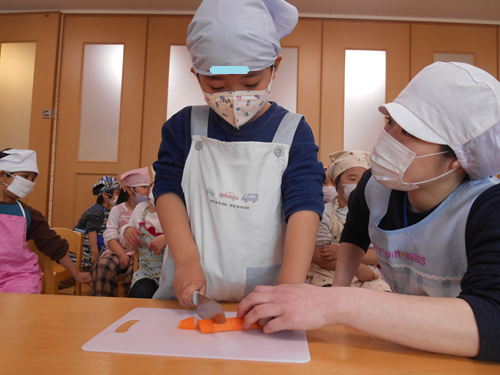 「自分たちで野菜も切ったよ!」「お米も研いだよ!」