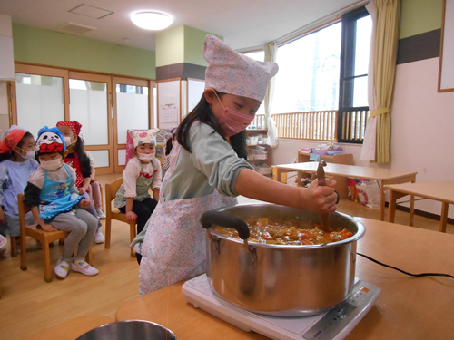 「美味しくなあれ!」と全員で一生懸命カレーを煮込みました。