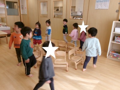 こんにちは。 ミアヘルサ保育園ひびき一之江です。 今回はつき組3月の様子をお届けします。 最近は【イス取りゲーム】【むっくりくまさん】【貨物列車】など、 ルールのある遊びを取り入れています♪ 大人気なのはイス取りゲーム!