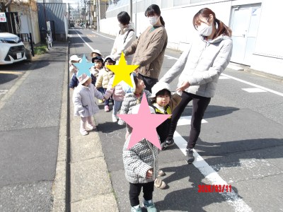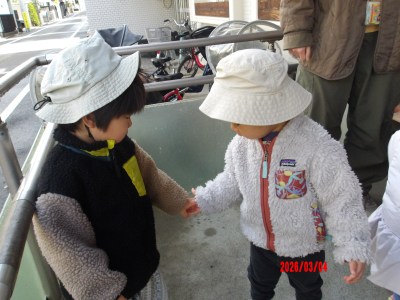 「お散歩に行こう~」と声をかけると「○○くんと(手を)繋ぐ!」「〇〇さんと!(手を繋ぎたい)」とお友だちや保育士と手を繋ぐことを楽しみに向かう姿も見られて、とても微笑ましいです(*^^*)
