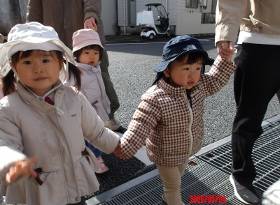 今ではしっかりと自分たちで歩いて、お友だちと手を繋いでお散歩に出かけています!