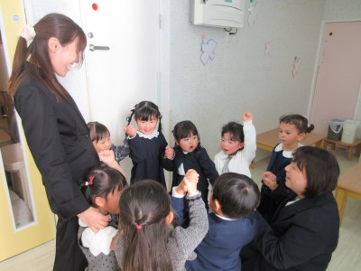 卒園証書授与式はきりん組さんが過ごしてきた保育園での集大成を見せる時!という事で、以前から証書の受け取り方や合奏練習などを頑張ってきました。その成果を見せるぞー!と式が始まる前は、きりん組さんで円陣を組んでみんなの士気を高めます!(^^)!