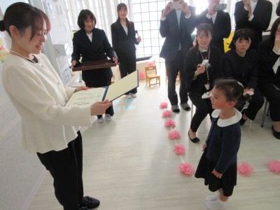 受け取る時は「ありがとうございます」と上手に園長先生から証書をもらう事ができました(^^)