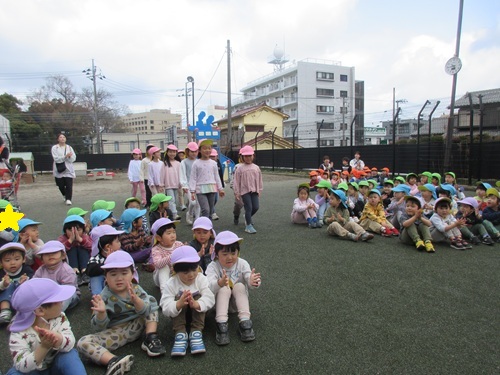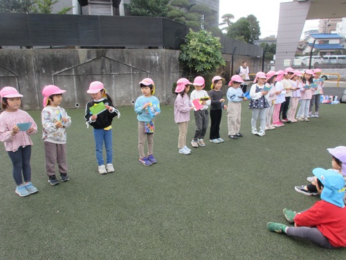 プレゼントのお礼ににじ組からは「ドキドキドン!一年生」の歌のプレゼントがあり、元気いっぱいの歌声に温かい雰囲気に包まれました。