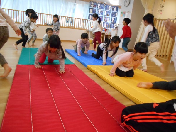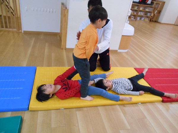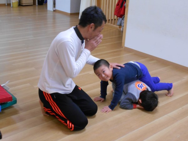 これはむずかしい!てをつなぎながら、たおれてますね!
