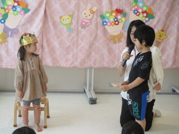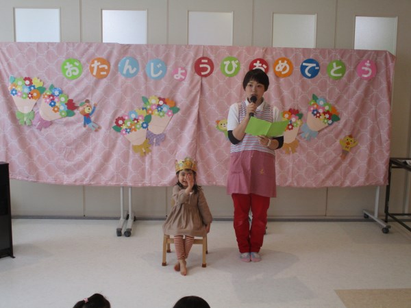 こんにちは。 日生曳舟駅前保育園ひびきです。 昨日は、4月の誕生会を行いました。 とても嬉しそうです。 代表して、きりん組のお友達から 誕生日カードのプレゼントがありました。 大きな声で『ありがとう』が言えていましたよ。