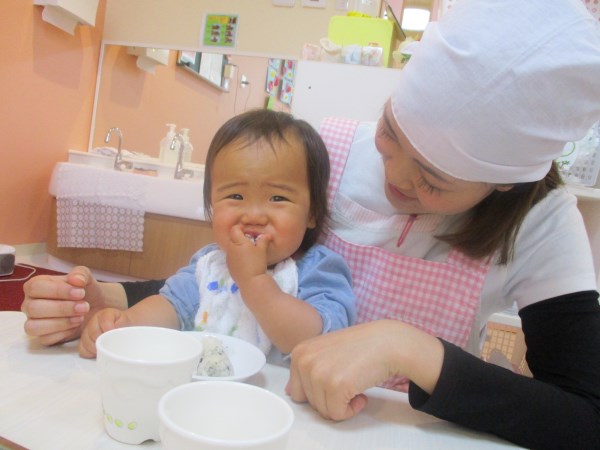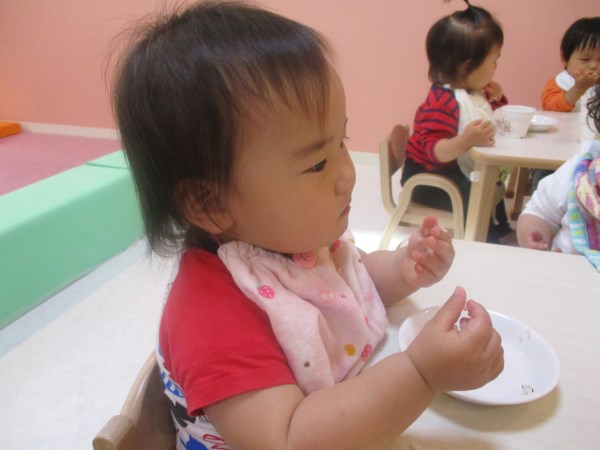 入園から1ヶ月が過ぎ、みんな保育園の給食にも慣れてきたようです。